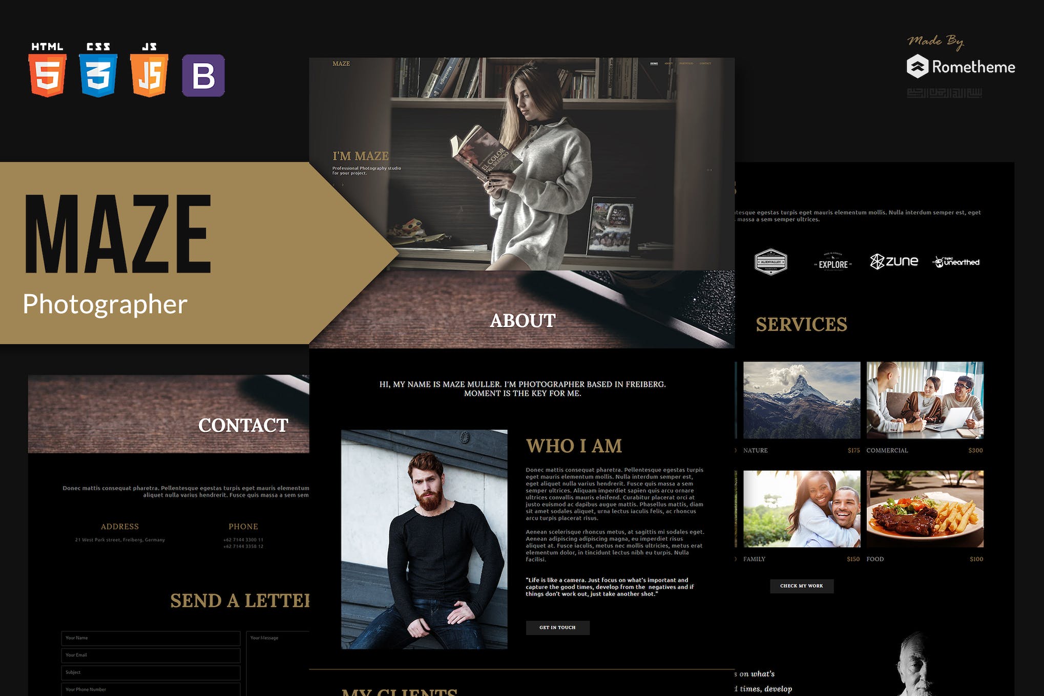 MAZE – Photography Portfolio HTML Template RS is a stunning and versatile template designed specifically for photographers. It offers a sleek and modern design, with a user-friendly interface that allows you to showcase your work in a captivating way. With its responsive layout and customizable features, this template is perfect for creating impressive photography portfolios.