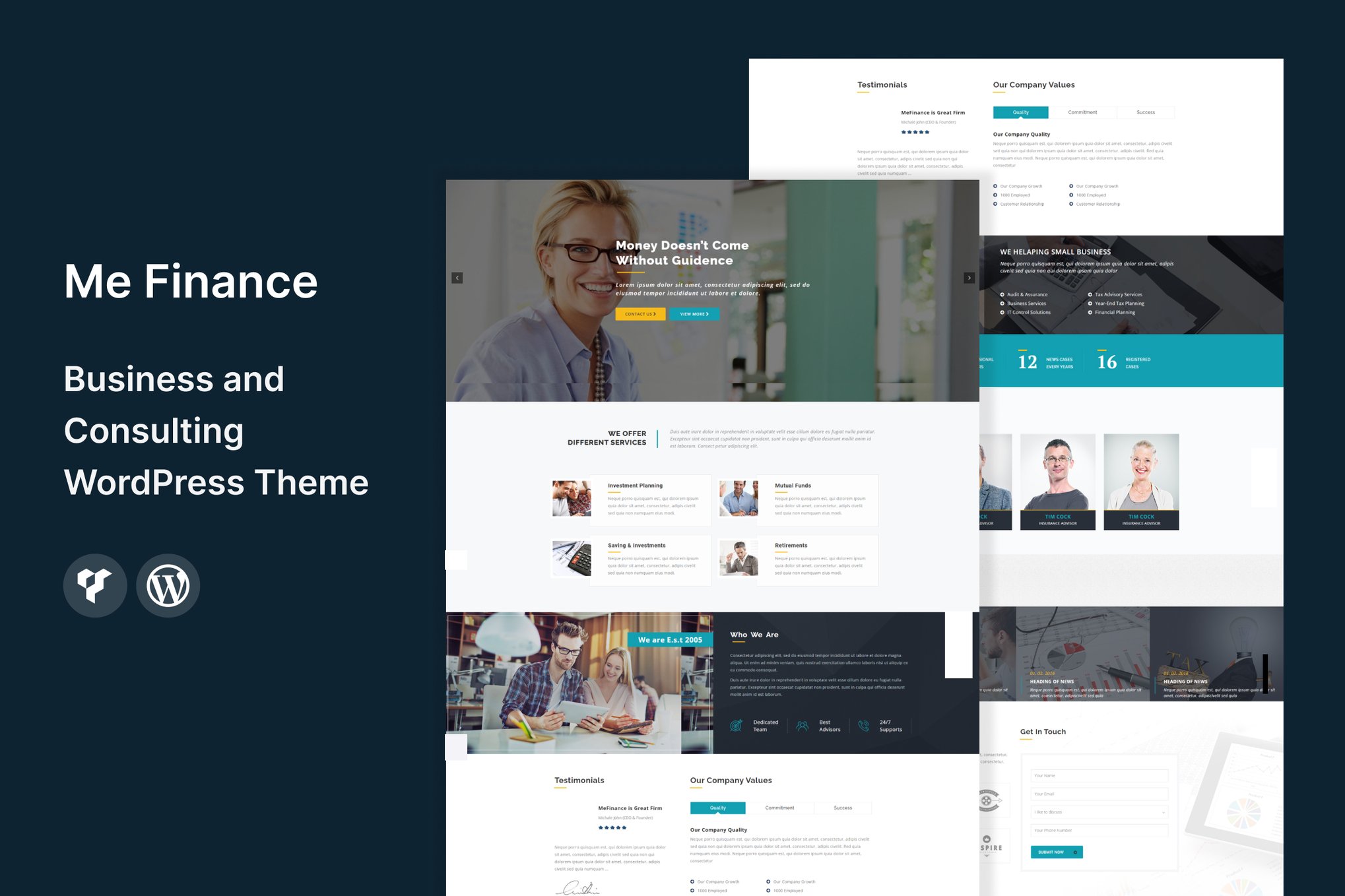 Me Finance is a sleek and modern WordPress theme designed for corporate websites, particularly ideal for financial advisors, accountants, consulting firms, insurance agencies, loan providers, tax help services, and investment firms. This business template is tailored to enhance online presence for corporate businesses and financial firms with essential features such as portfolio showcases, blog integration, testimonial sections, and personal profile pages. Me Finance stands out for its responsiveness across all devices, ensuring a seamless user experience. The theme’s easy customization options make it a versatile choice for businesses looking to establish a professional online presence.
