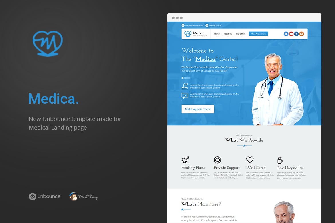 Download Medicais , the ultimate Unbounce template designed specifically for medical projects, yet versatile enough for multi-purpose applications. With its highly responsive design and Unbounce Page Builder, creating landing pages for medical services has never been easier. The template features flexible elements and unique design features to help your project stand out. The included PSD files provide all the necessary design elements to customize to your liking. Get started today and download Medicais to bring your medical project to life with ease!