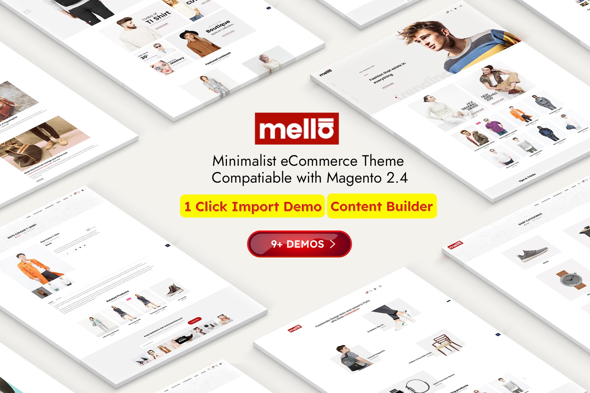 Mella is a modern and minimalist eCommerce Magento theme designed for various types of stores including furniture, clothing, digital products, accessories, cosmetics, books, and more. With 9+ homepage demos, this theme offers a clean and contemporary design that can be easily customized through admin settings. Mella is optimized for super speed and SEO, making it a great choice for online businesses looking to enhance their online presence. The theme features pixel-perfect demos, powerful sliders, page builders, and a range of customization options, allowing users to create the perfect design for their store. Overall, Mella is a versatile and user-friendly theme that caters to different types of eCommerce stores with its modern aesthetic and functional features.