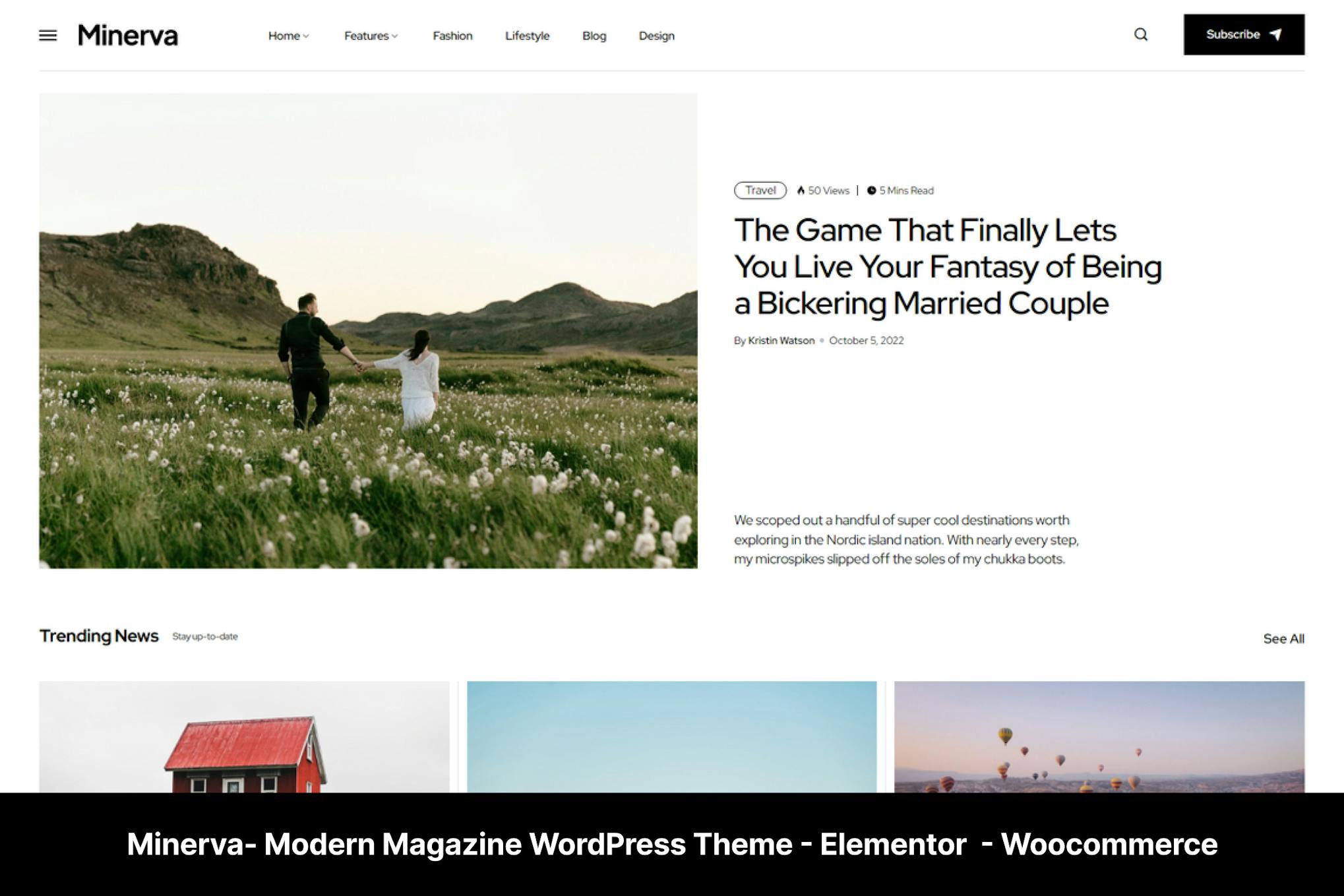 Introducing Minerva, a trendy and attractive Blog WordPress Theme designed for creative magazines, news portals, and personal blogs. Whether your website focuses on Lifestyle, Fashion, Tech, or any other category, Minerva has everything you need for a stunning News/Magazine site. With its clean, modern, and user-friendly design, along with its customizable and flexible Option Panel, you can effortlessly increase your conversion rates and user engagement. Experience easy installation, multiple homepage blocks, advanced query builders, and cross-browser compatibility with Minerva. Choose Minerva for an exceptional online presence that adapts perfectly to any device.