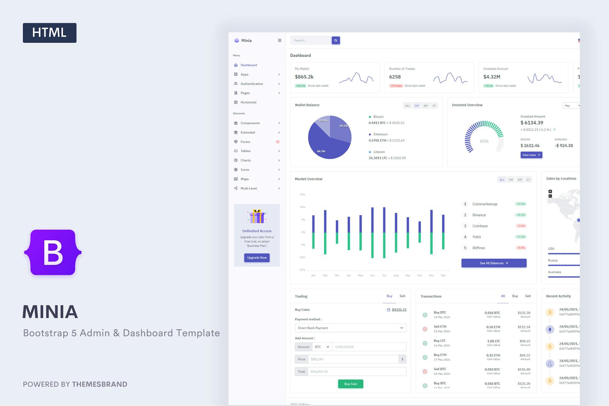 The Minia Bootstrap 5 Admin Dashboard Template offers a sleek and modern design for managing your web applications effectively. With a clean layout and responsive design, this template provides a user-friendly experience for administrators. It includes a variety of components and features to streamline dashboard creation and customization. The template is built on the latest Bootstrap 5 framework, ensuring compatibility with the latest web technologies. Whether you are managing a website, app, or software, the Minia template provides a professional and intuitive solution for your admin dashboard needs.
