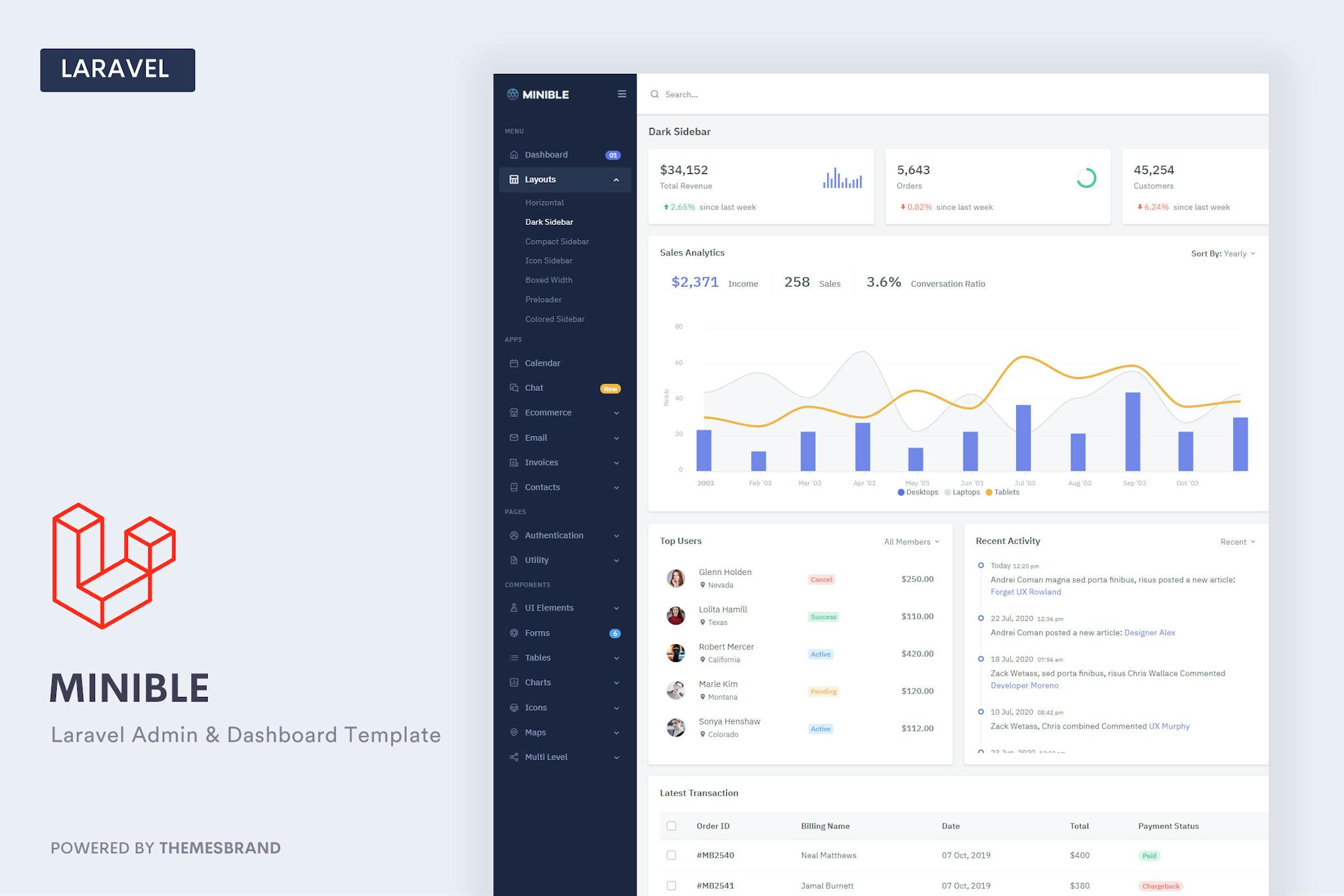 Minible – Laravel 10 Admin & Dashboard Template is a highly customizable and user-friendly template that offers a seamless experience for managing your website’s backend. With its modern design and advanced features, it allows you to effortlessly create and update content, monitor analytics, and handle user management. Whether you’re a seasoned developer or a beginner, Minible provides the perfect toolkit for creating stunning admin interfaces.