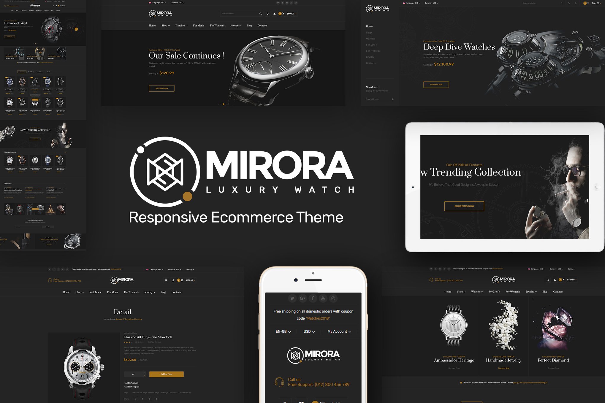 Download the Mirora Responsive Prestashop theme – a sleek and modern approach to showcasing your watch collection. With its elegant design and 4 homepage layouts, Mirora exudes luxury with a black background and white accents. Stand out with a customizable Mega Menu, allowing easy navigation to CMS pages and external URLs. Create stunning slideshows effortlessly and organize products with multi-tabs like bestsellers and featured items. Social icon integration, blog support, and multi-currency options make Mirora a versatile choice for your online store. Responsive and visually stunning, Mirora is your go-to theme for a seamless shopping experience. Elevate your online presence with Mirora Watch Prestashop theme today!