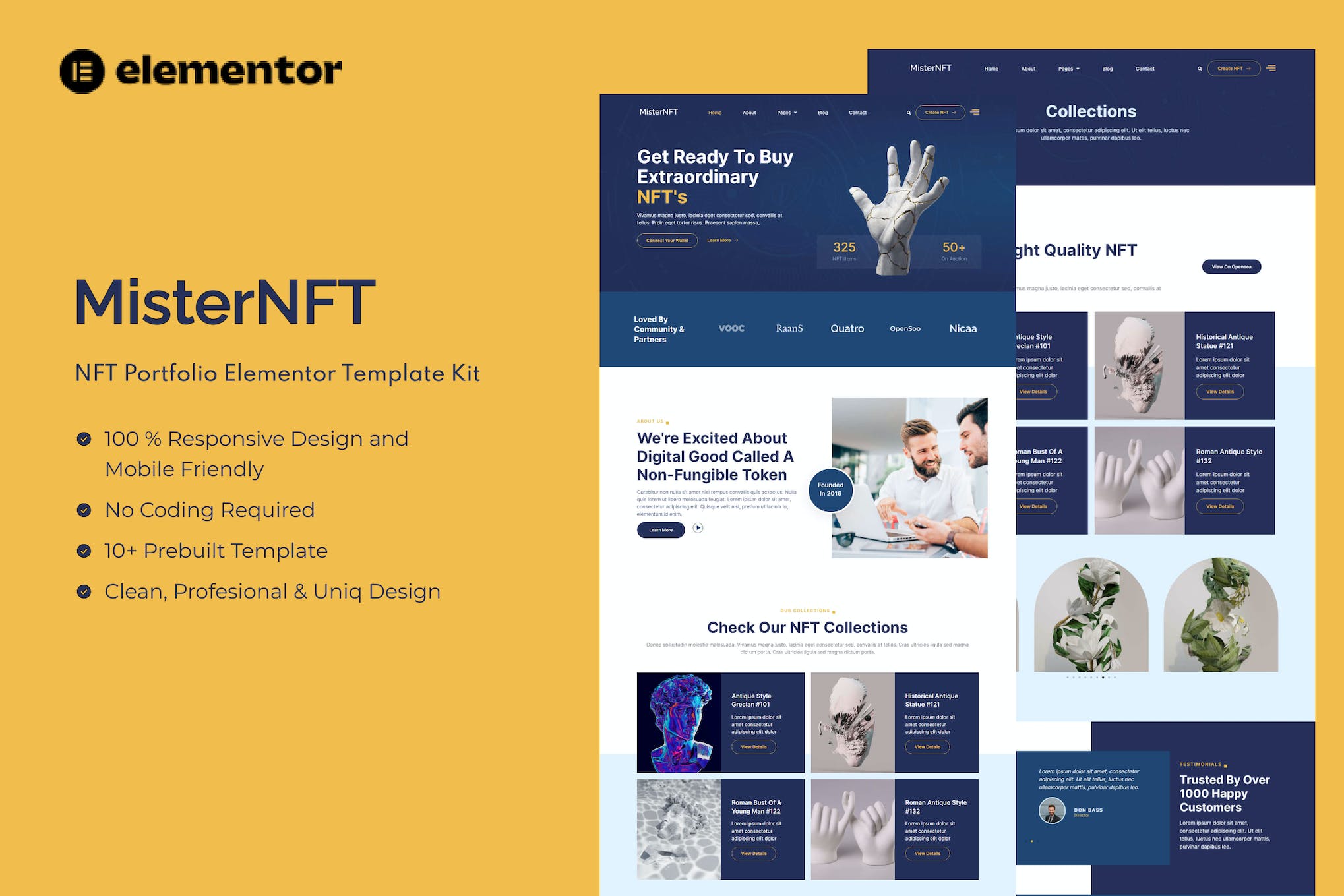 Introducing MisterNFT – NFT Portfolio Elementor Template Kit, a professional and user-friendly solution for creating stunning websites. With its fully responsive design, this kit ensures your website looks great on any device. No coding is required, making it easy for you to build a complete website. Featuring 10+ incredible template pages, clean and unique design, and integration with popular plugins like Elementor and ElementsKit Lite, MisterNFT empowers you to create a seamless and professional online presence. Get started today and showcase your NFT collection with style.