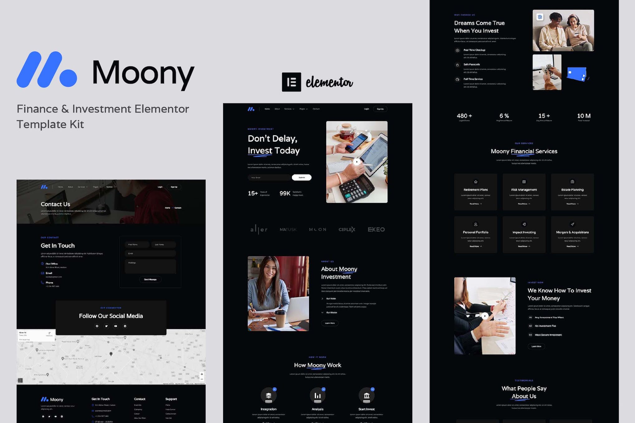 Introducing Moony – Finance & Investment Elementor Template Kit, an ideal solution for finance and investment companies. With its simple, modern, and clean design, Moony is not only visually appealing but also fully customizable to suit your unique business needs. This responsive template kit includes 12 ready-to-use pages and 14 templates, ensuring a seamless browsing experience across all devices. Whether you’re a beginner or an expert, Moony can be easily customized without any coding knowledge required. Take your finance or investment business to the next level with Moony.