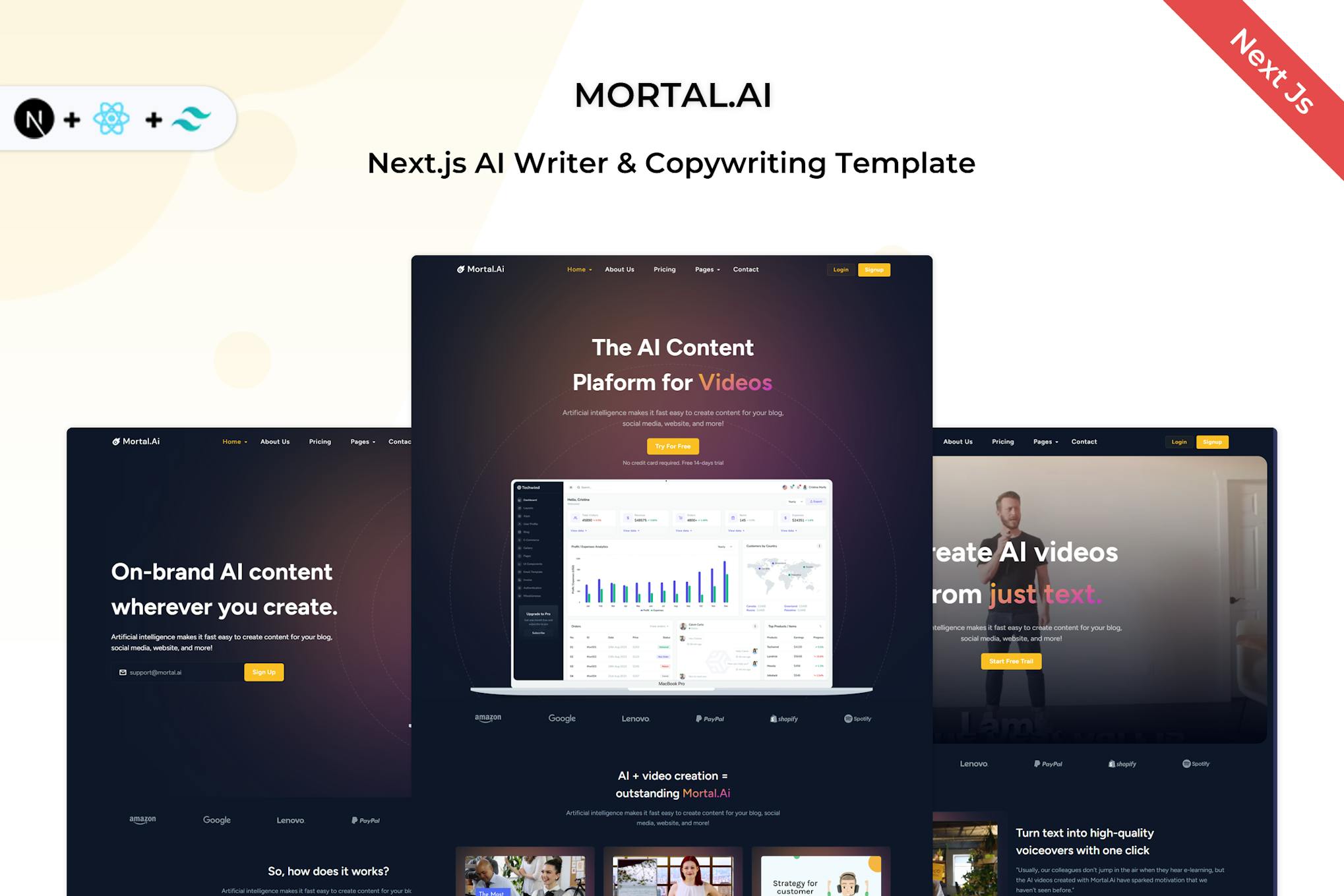 Elevate your AI writing and copywriting endeavors with Mortal.Ai – a responsive Next js template tailored for professionals in the field. Designed for a seamless user experience, Mortal.Ai offers a modern and clean aesthetic ideal for Writing Blog Content, Digital Ad Copy, SEO Content, and more. With features like Dark & RTL themes, React and Tailwind CSS integration, and a range of other customizable elements, Mortal.Ai is the perfect choice for crafting a unique and engaging website. Experience the power of Mortal.Ai and unlock endless possibilities for your content creation journey.