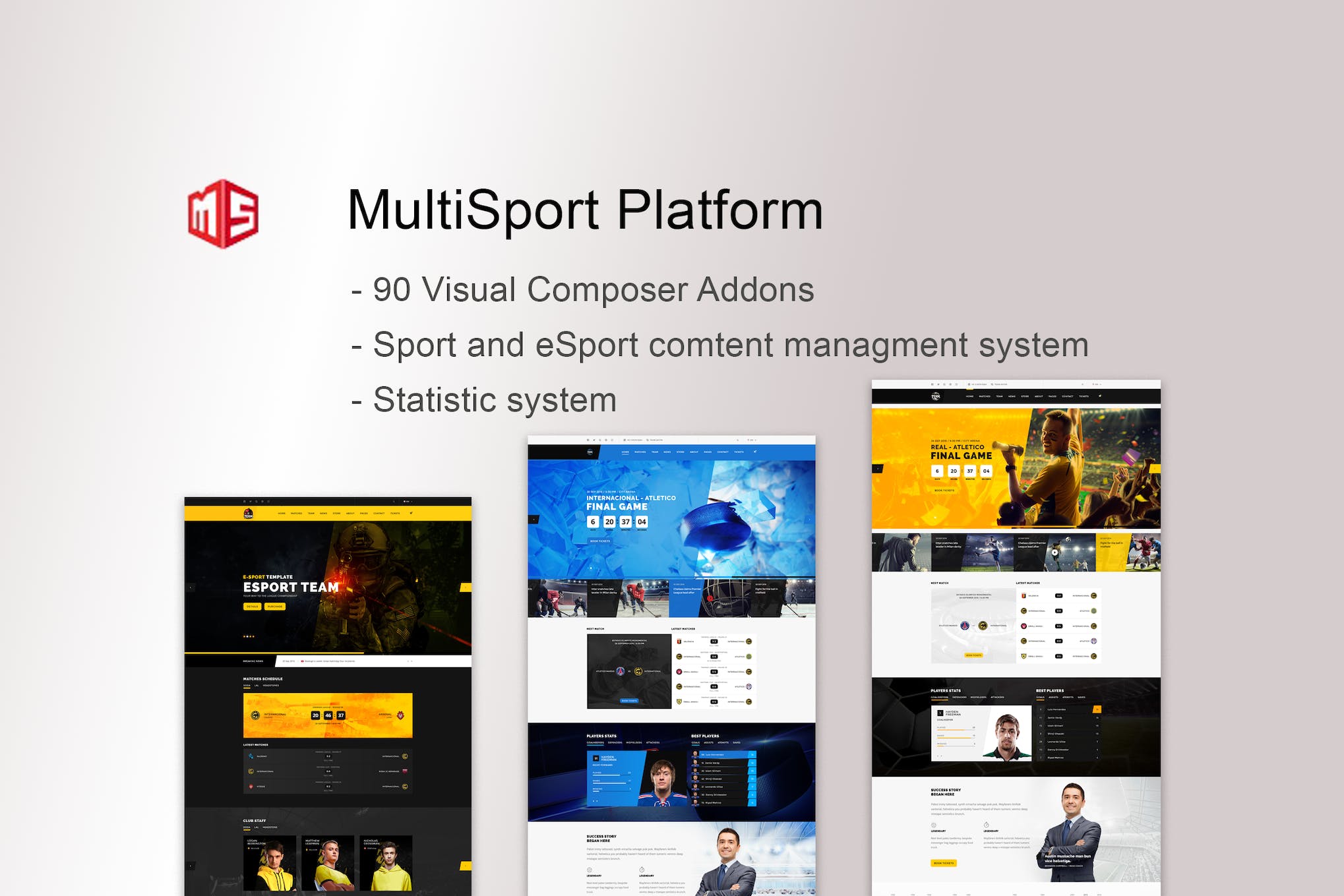 Introducing MultiSport Platform, the most comprehensive sport plugin for WordPress. An essential tool for managing sport and esports teams, leagues, and tournaments, this plugin offers a range of features to facilitate event management, player organization, and statistical analysis. With over 90 custom addons and shortcodes, built-in visual editing capabilities, and the ability to create custom statistic types for every sport, MultiSport Platform is the ultimate resource for sports enthusiasts. Unlock the full potential of your WordPress website with this powerful plugin and immerse yourself in the world of sports like never before.