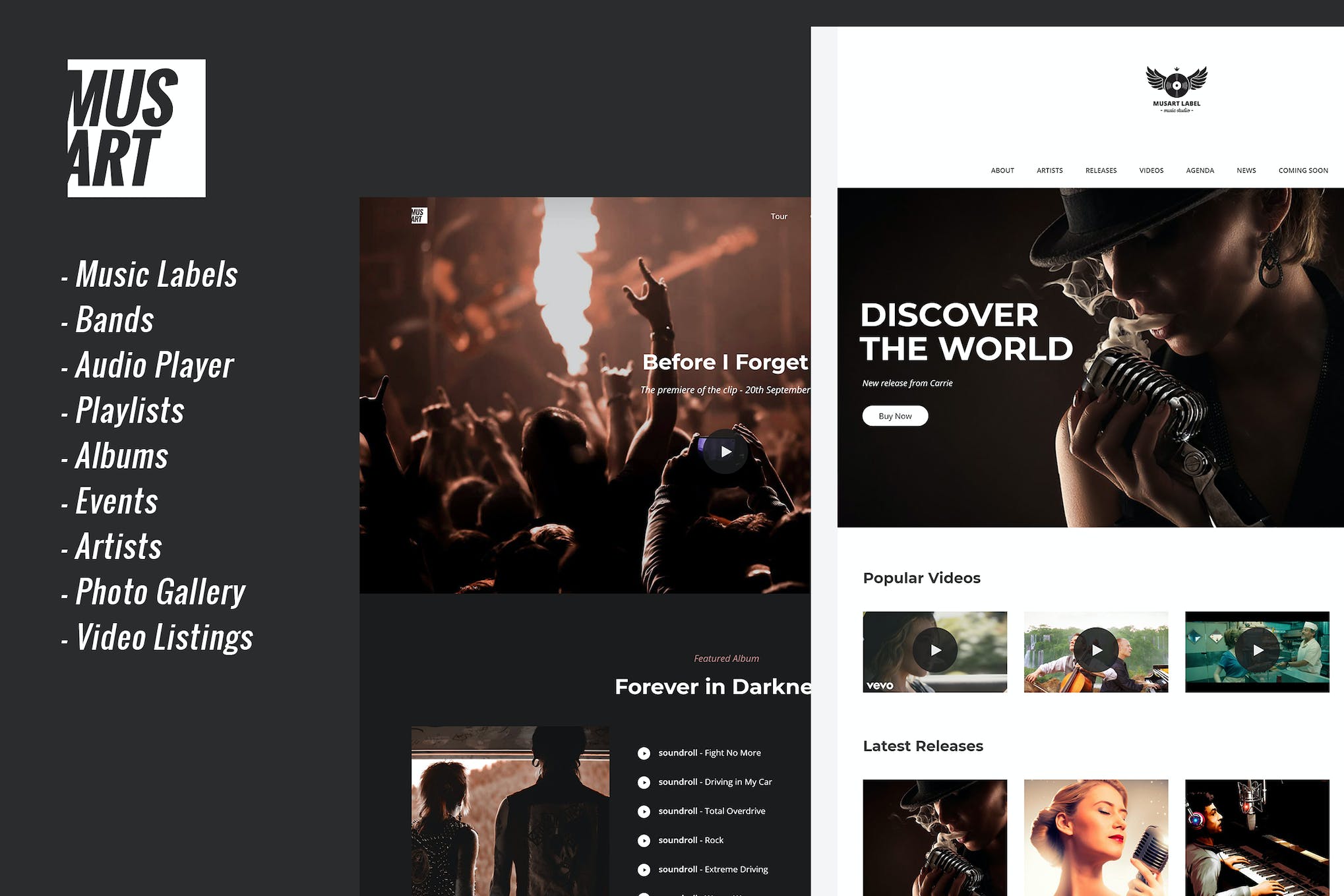 Introducing Musart, a professional WordPress theme designed specifically for Music labels, Bands, Artists, Musicians, DJ’s, Producers, and Music lovers. With its clean and modern design, Musart offers two different demos with white and dark stylings, easily customizable page layouts, and an impressive audio player with playlists. This theme also includes essential features such as events list, discography, photo gallery, and smooth scrolling for one page sites. With WPBakery Page Builder and Slider Revolution bundled in, Musart empowers you to create a stunning online presence. Please note that the preview images are for display purposes only and are not included in the download package. Get Musart today and showcase your passion for music.
