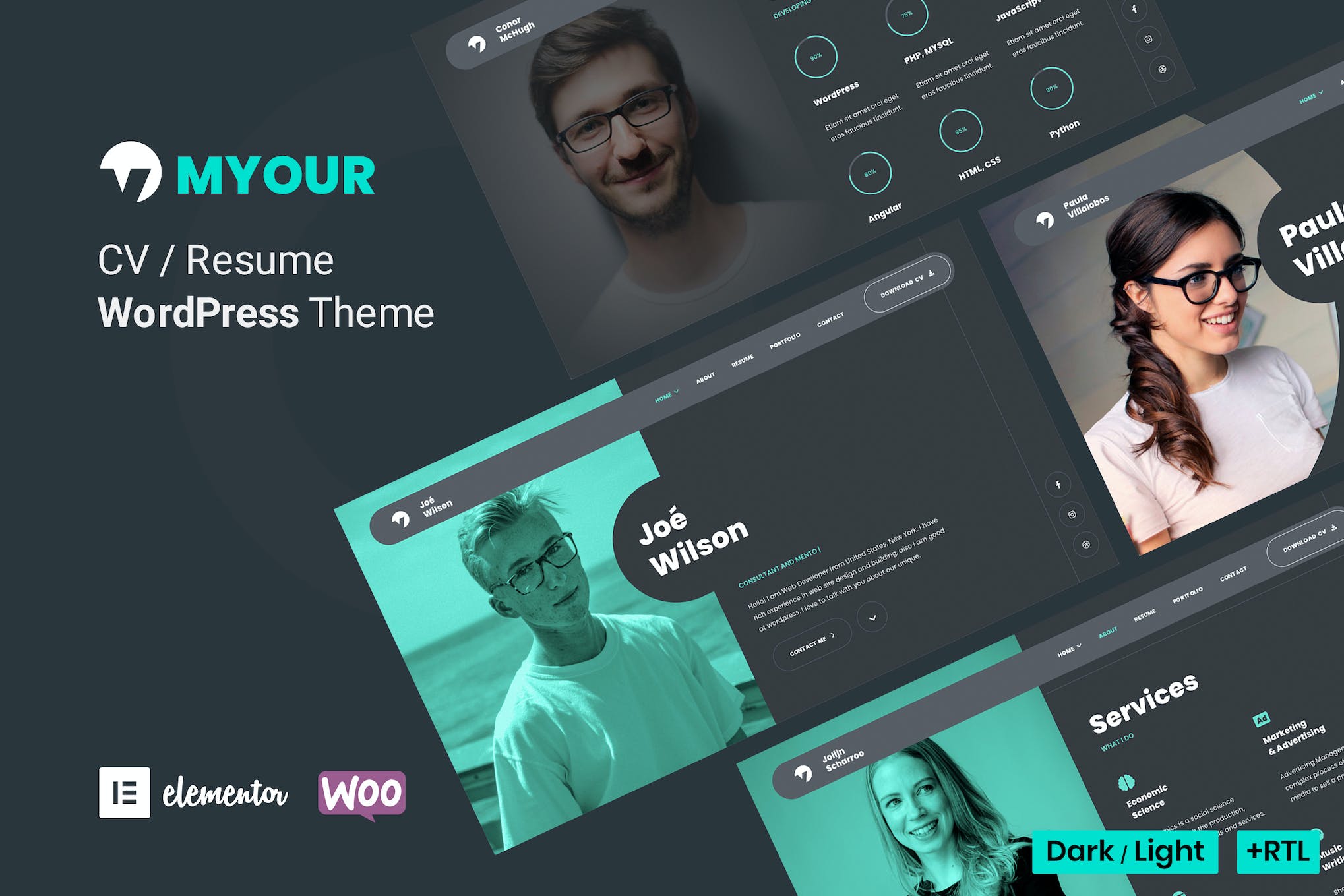 Introducing Myour – Resume CV & Personal Portfolio Elementor WordPress Theme. Designed for professionals in various fields such as developers, designers, programmers, freelancers, artists, and photographers, this minimal and clean theme features a stunning dark design that will help you establish a strong web presence. With compatibility with the latest WordPress version and the user-friendly visual drag and drop elementor page builder, creating a personal website or CV/resume has never been easier. The theme also includes impressive features such as a portfolio with filters, testimonials carousel, pricing tables, and advanced theme options. Fully responsive and translation-ready, Myour is the perfect choice for showcasing your skills and accomplishments in a professional manner.
