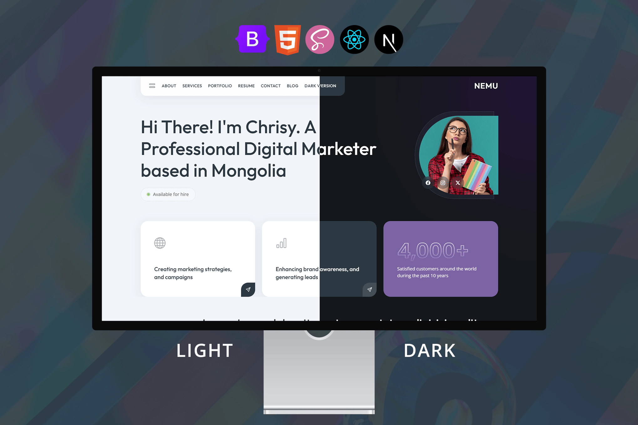 Nemui is a sophisticated NextJS Personal vCard & Portfolio template that boasts a sleek and modern design, perfect for showcasing your unique style and professional achievements. This template is powered by Next.js 14 and Bootstrap 5, ensuring a seamless experience across all devices. With light and dark versions available, Nemui offers a customizable experience that suits your preferences. Its key features include responsive design, SCSS files, sticky header menu, lightbox media support, Retina-ready display, a highly organized structure, contact form integration, and detailed documentation. With lifetime free updates and a host of other features, Nemui is the ideal choice for crafting a stunning online presence with ease.