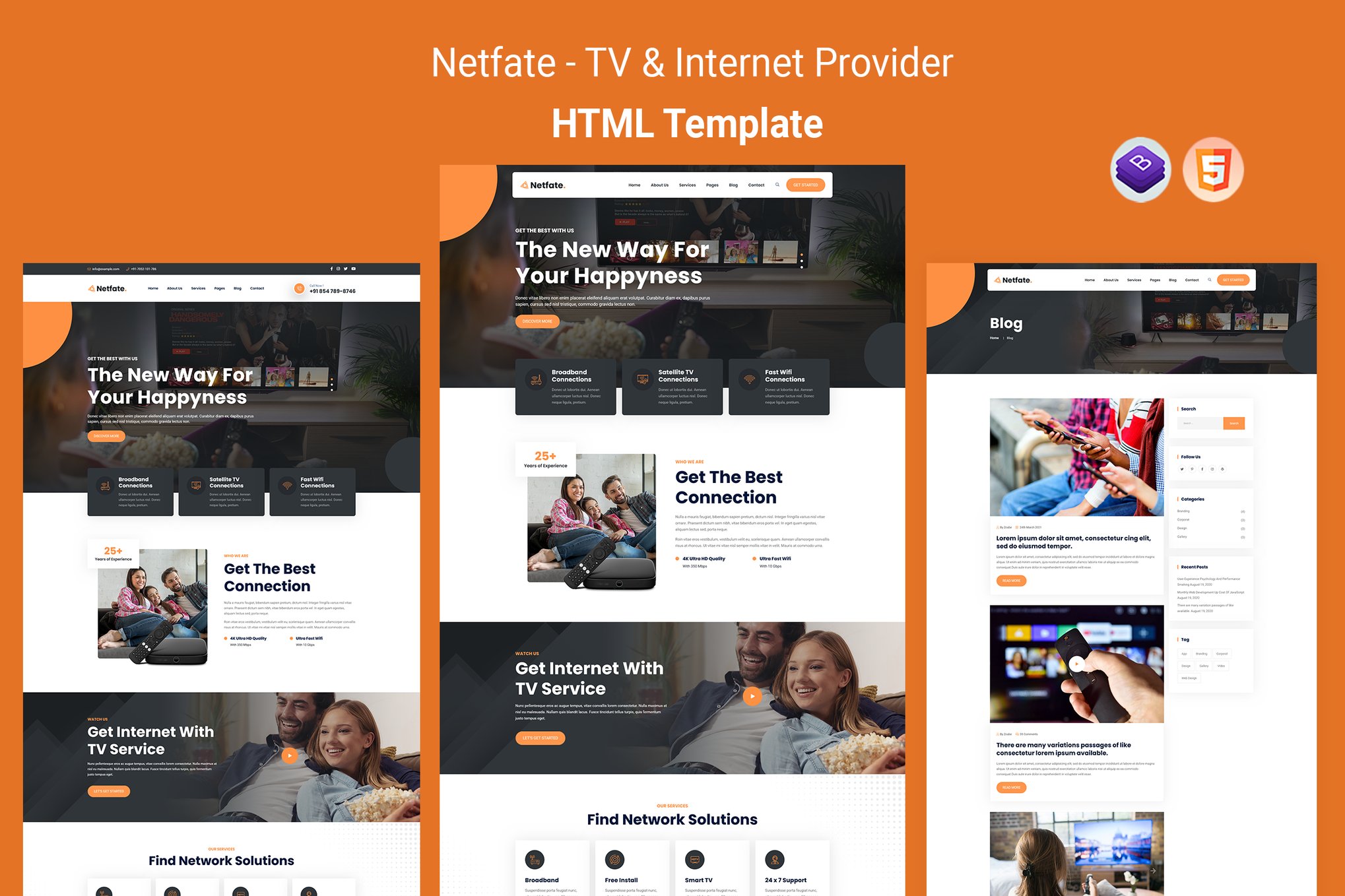 Netfate – TV & Internet Provider HTML Template is a versatile and modern template designed for various services including Broadband, Satellite TV, Cable Television, Online Cinema, VoIP, and more. The template can be easily customized as each PSD file is well-layered for easy access. The design is fully responsive, based on Bootstrap 5.x, and includes 2 Home Page options, 10 inner pages, and Wow Animations for added visual appeal. With 360+ icons, the template is built with HTML5 & CSS3, making it easy to customize and maintain. The clean design features a sticky header, commented and clean code, and is Retina Ready for a crisp display. Additionally, the template includes free Google Fonts like Poppins and popular icon sets like flaticon and fontawesome, enhancing the overall user experience.