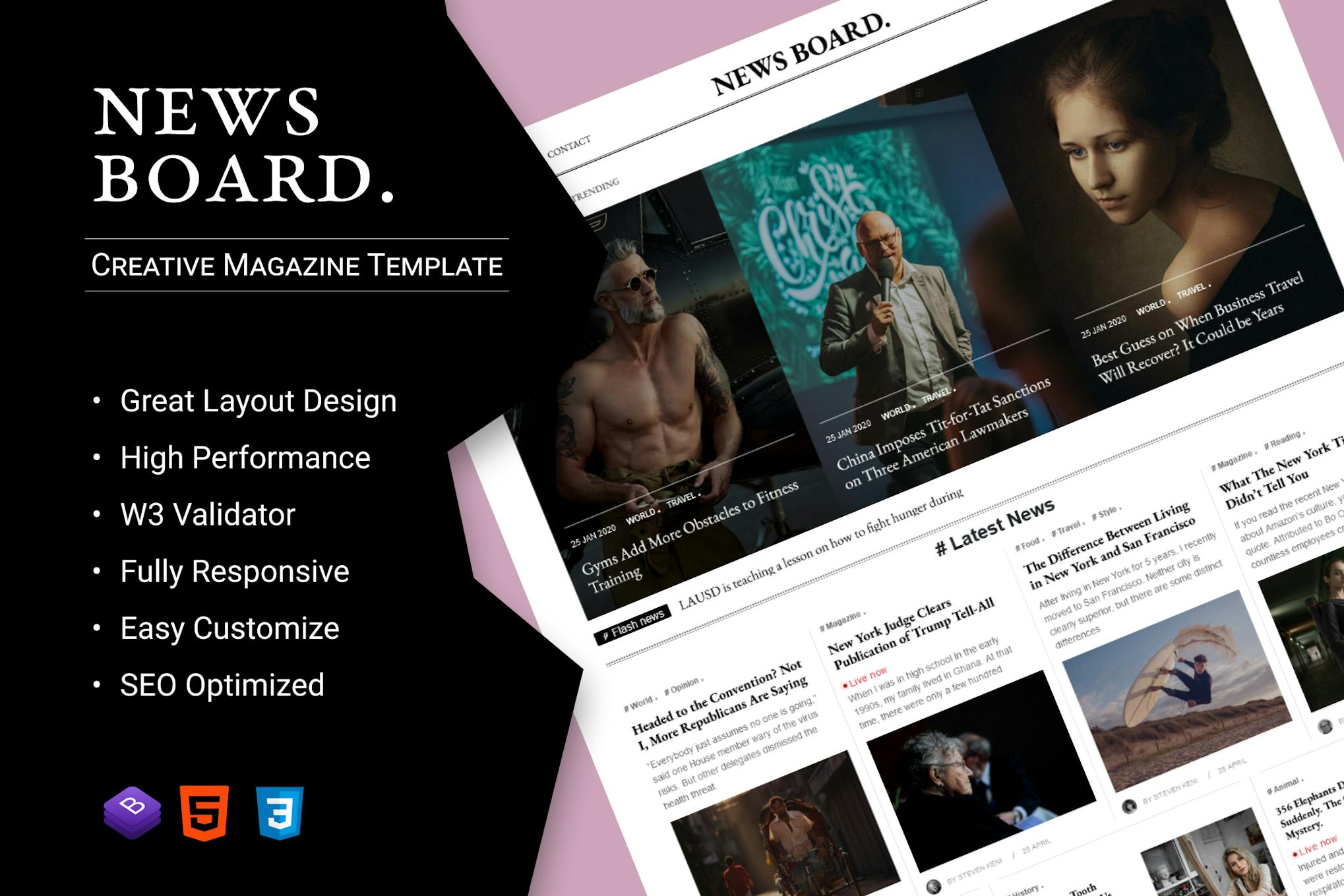 The NewsBoard is a creative and versatile HTML template designed for blogs, magazines, and publishers. Its clean and modern layout allows for easy customization and seamless integration of content. With a user-friendly interface and responsive design, it provides an excellent experience across various devices. Featuring a range of dynamic features, this template is perfect for showcasing a variety of content types in an engaging and professional manner. Whether you are a blogger, publisher, or magazine owner, NewsBoard is a reliable and stylish choice for building a captivating online presence.