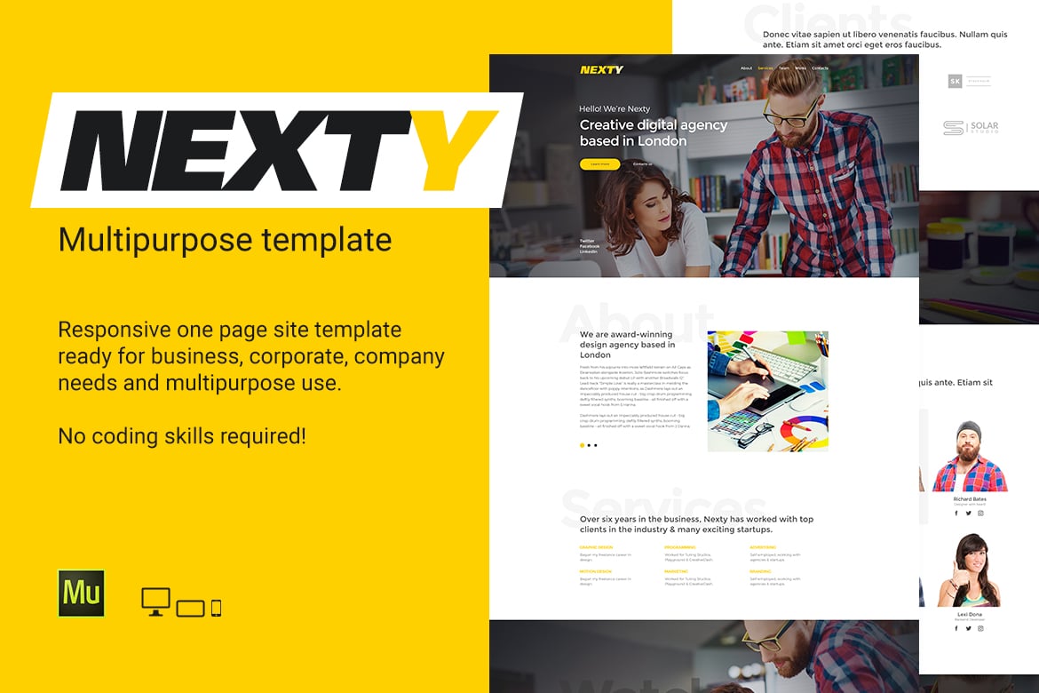 Download Nexty – a sleek and versatile one-page Muse template tailored for creative minds. Ideal for agencies, freelancers, artists, and professionals alike, this template boasts a modern design with a touch of coolness. With Nexty, crafting a unique portfolio is a breeze – no coding skills required! Fully responsive across all devices, it offers flexibility and ease of customization with editable elements and color schemes. Designed with user experience in mind, Nexty is well-organized and user-friendly. Please note, while the template is photo-ready, images used in preview are not included. Elevate your online presence with Nexty today!