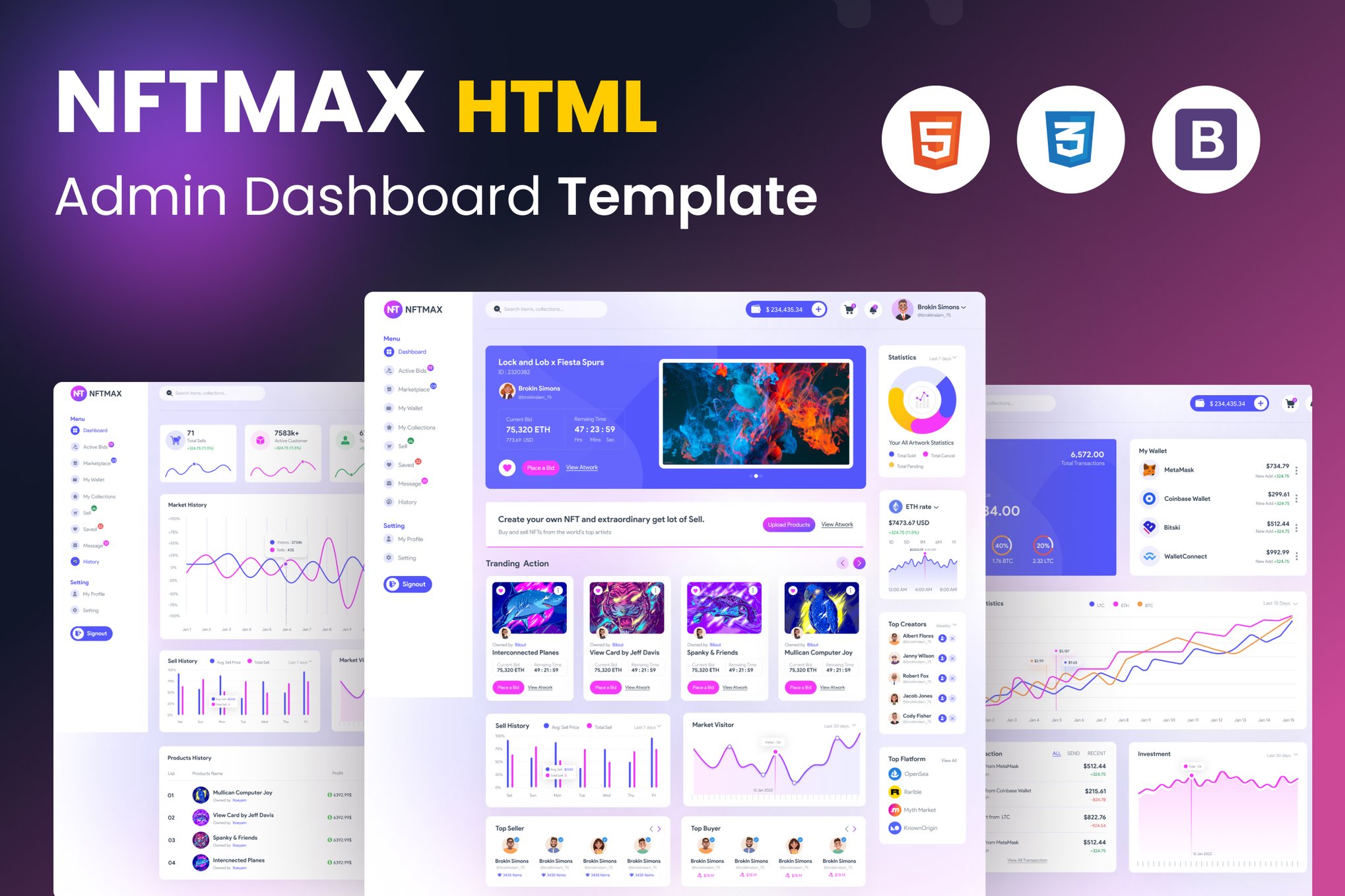 Introducing NFTMAX – Admin Template for NFT, a meticulously crafted solution designed with attention to detail and passion. This comprehensive admin and dashboard template is tailor-made for the NFT marketplace, ensuring all essential features are included. With a fully responsive layout and adherence to standard coding practices, NFTMAX offers seamless transitions and a diverse array of components. Key features include Bootstrap v5 integration, 40+ dashboard pages, 200+ components, mobile responsiveness, clean design, Google Fonts support, and lifetime support. Compatible with blockchain NFT, collectibles, crypto, and more, NFTMAX promises an exceptional user experience with its dynamic layouts and modern aesthetics. Included in the package are HTML, CSS, JS files, dummy content, and detailed documentation for ease of use. Elevate your NFT platform with NFTMAX – the ultimate admin template for unparalleled functionality and aesthetics.