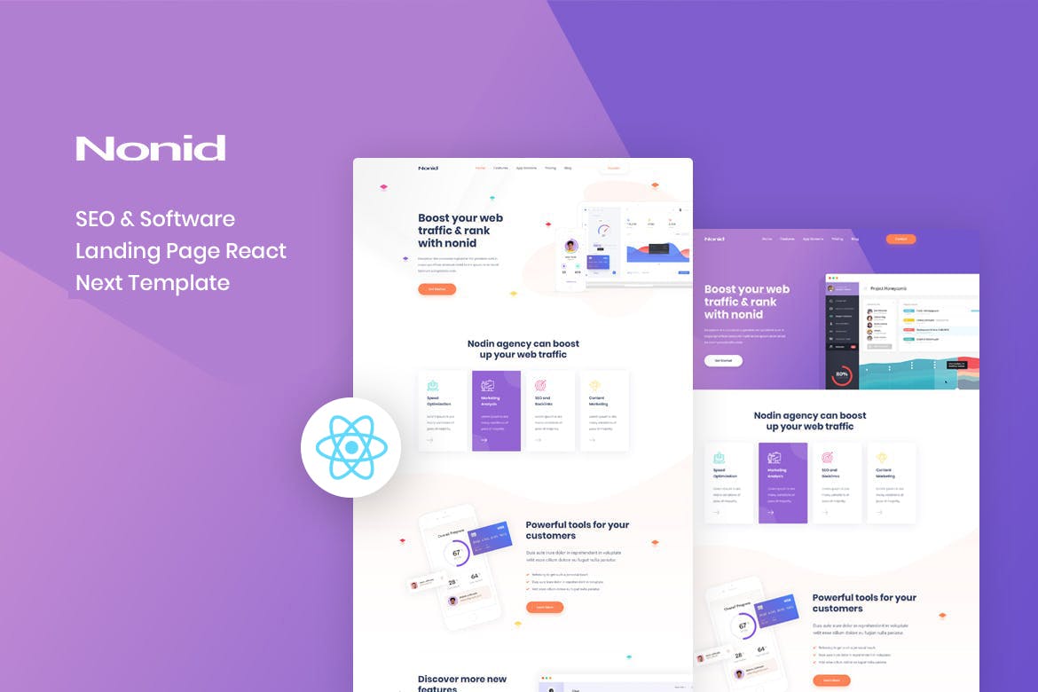 The “Nonid” React Next SEO Software Landing Page is a modern and sleek website template designed specifically for software companies. With its clean and professional design, this template is perfect for showcasing software products and driving conversions. The use of React and Next.js ensures a smooth and responsive user experience, while the built-in SEO features help improve search engine visibility. The template comes with easily customizable sections, making it simple for businesses to tailor the page to their specific needs. Overall, the “Nonid” template offers a visually appealing and functional solution for software companies looking to establish a strong online presence.