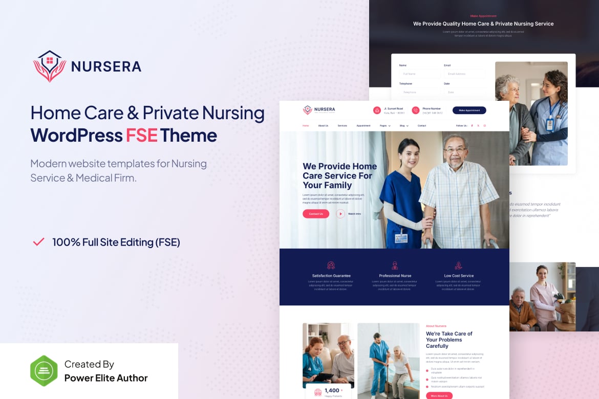 Introducing Nursera, a modern WordPress theme tailored for Health Care, Nursing Service, and Medical Firm websites. Fully compatible with the block editor, Nursera offers advanced features for easy customization to cater to your specific business needs. With the power of the Block Editor as a full website builder, designing and customizing your site has never been simpler. Nursera overcomes the challenges of online competition by providing an intuitive Full Site Editing experience. Enjoy unparalleled design flexibility, a diverse template library, lightning-speed performance, SEO friendliness, seamless responsive design, lifetime regular updates, and dedicated world-class support. Elevate your online presence with Nursera and create a visually impressive, user-friendly website that strengthens your brand and engages visitors effectively. Choose Nursera for a seamless, hassle-free website-building experience that leaves a lasting impression on your audience.