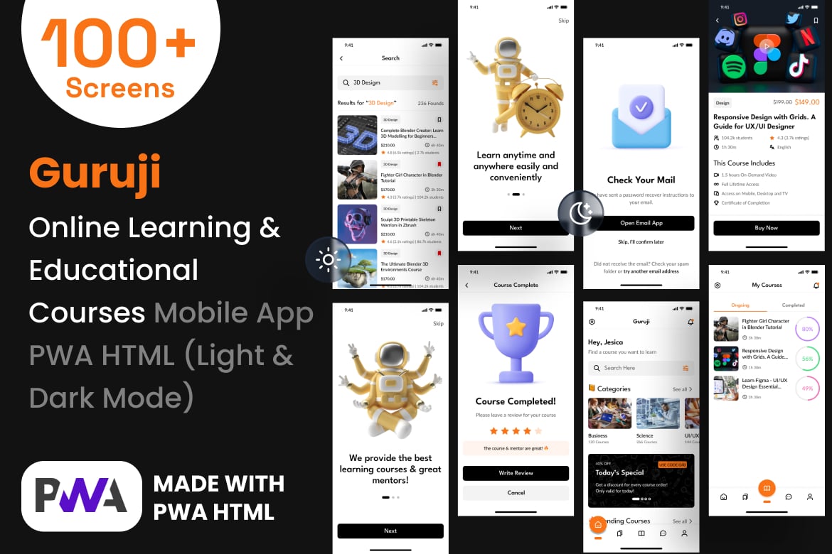 Empower mobile learning with Guruji, an online education mobile app PWA HTML template. Create a user-friendly learning platform with diverse course formats and engaging features to enhance education accessibility and engagement.