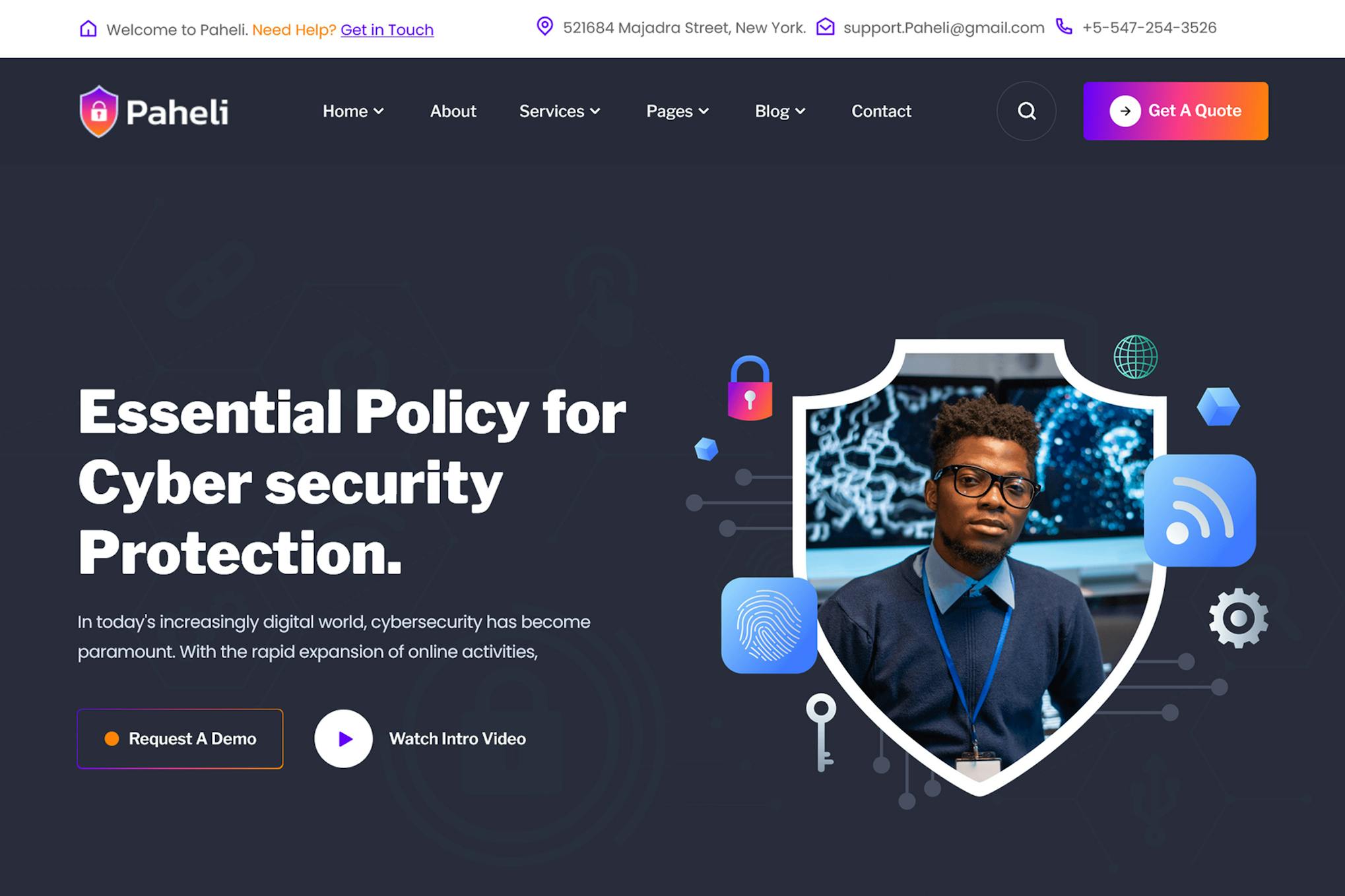 The Paheli Cyber Security React Template is a modern and professional website template designed specifically for cyber security companies. With a sleek and user-friendly design, this template offers a responsive layout that looks great on all devices. It features a clean color scheme, bold typography, and high-quality graphics that help convey trust and reliability. The template includes various sections such as services, team members, testimonials, and contact forms to provide visitors with all the necessary information. With easy customization options and well-structured code, this template is a great choice for any cyber security business looking to establish a strong online presence.