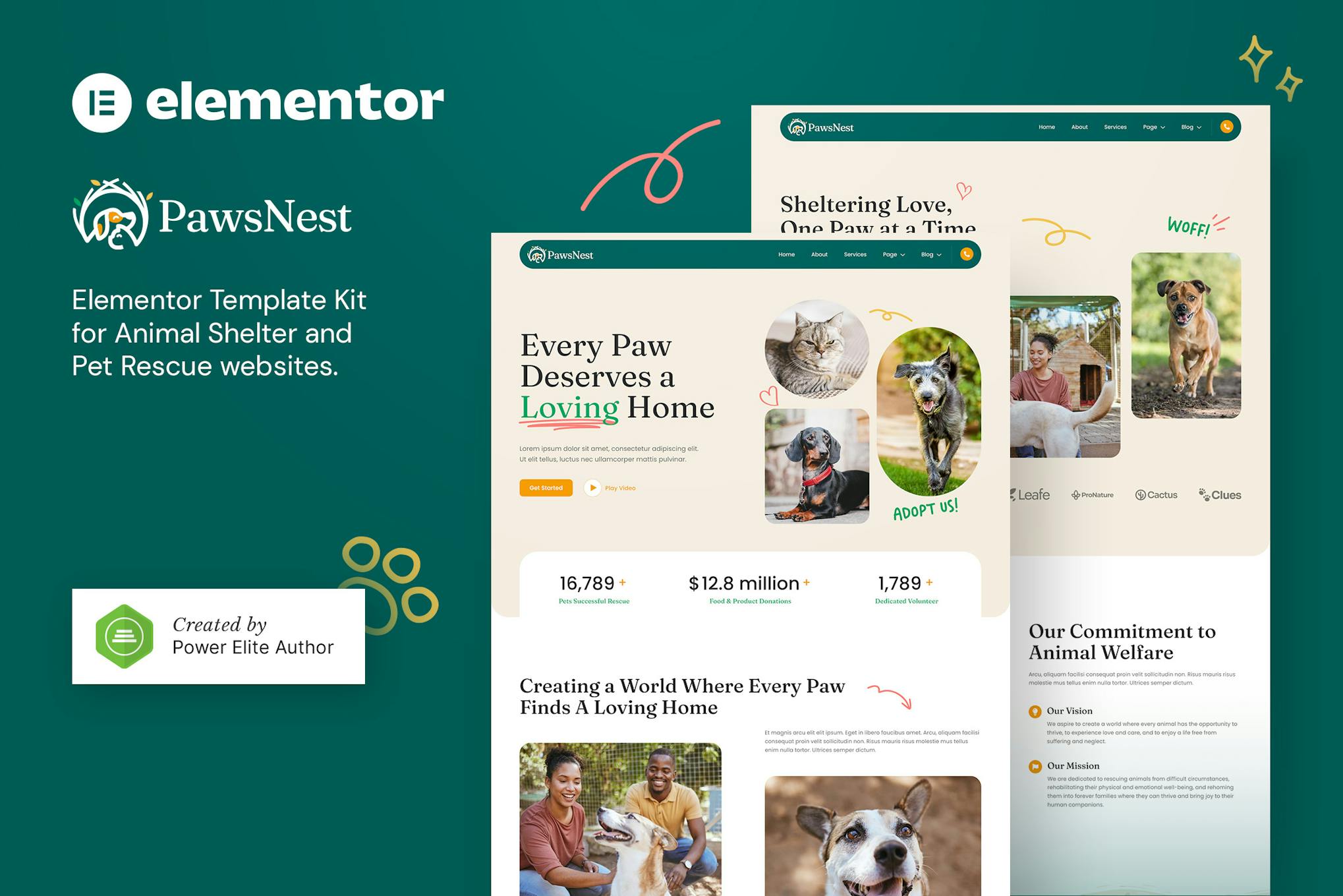 PawsNest is a meticulously designed Elementor Template Kit ideal for Animal Shelters, Pet Rescues, and Animal Welfare Organizations. With a stunning and responsive layout, your website will look impeccable across all devices, offering a visually immersive experience with high-resolution graphics. This kit includes 13+ ready-to-use templates that can be easily customized through Elementor without any coding skills required. From showcasing your noble cause to engaging online platforms for animal lovers, PawsNest aims to elevate your online presence. Join us today in building a compassionate community where every click supports the welfare of our beloved furry friends. With features like a modern design, full responsiveness, and easy customization, PawsNest is the perfect solution for creating a professional and engaging website for all pet care enthusiasts.
