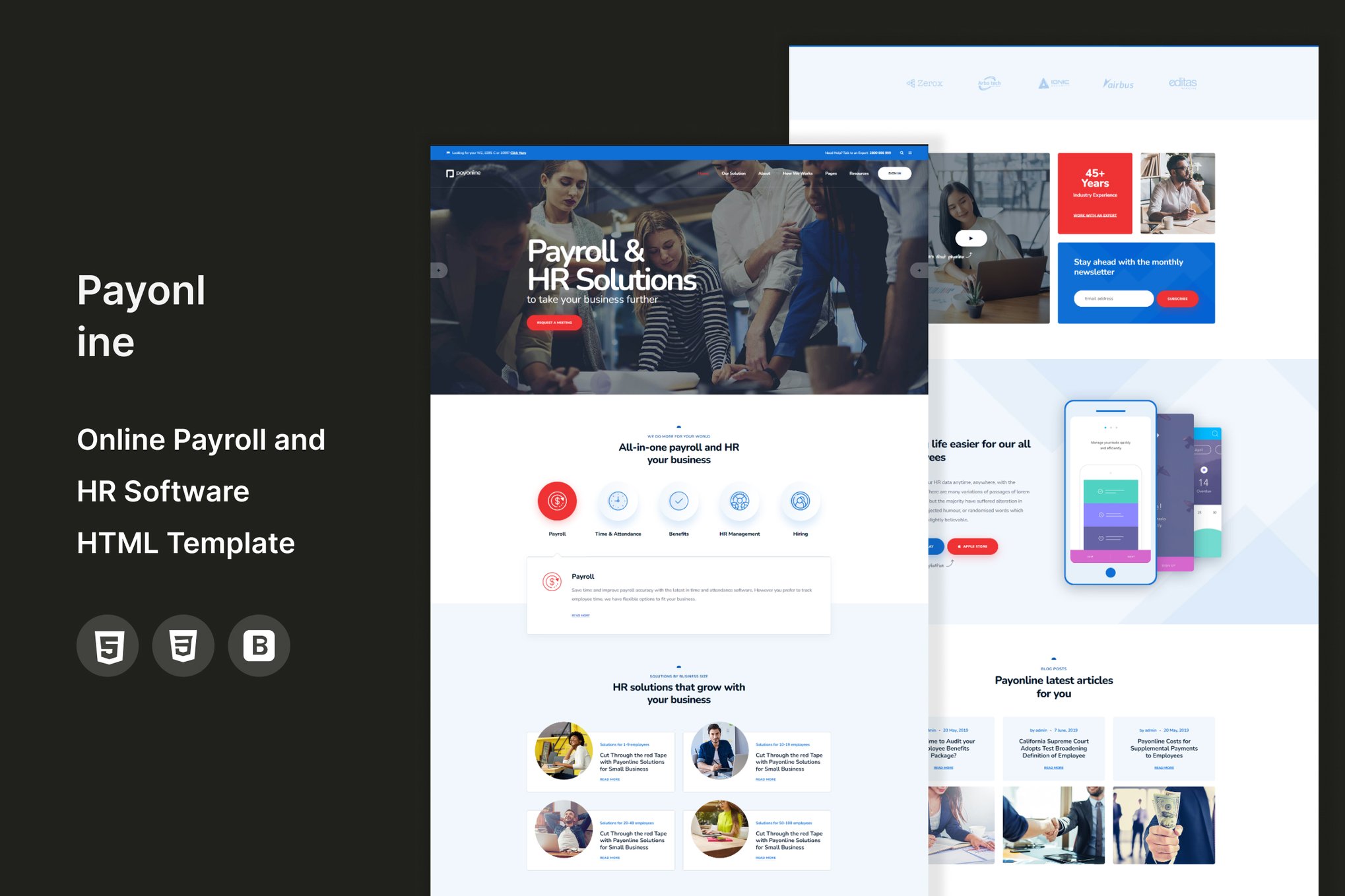 Payonline is a versatile and user-friendly online Payroll and HR Software Solution that caters to businesses of all sizes. With a well-organized layout showcasing various services and customizable features, Payonline offers comprehensive HR solutions, from payroll management to human capital resources. The template is fully responsive across multiple platforms, ensuring a seamless user experience. Its modern design, built on Bootstrap, is visually appealing and optimized for Retina displays. With easy customization options and a range of elements, such as Mobile, Mac, and Web sections, Payonline provides the tools necessary to propel your business forward.