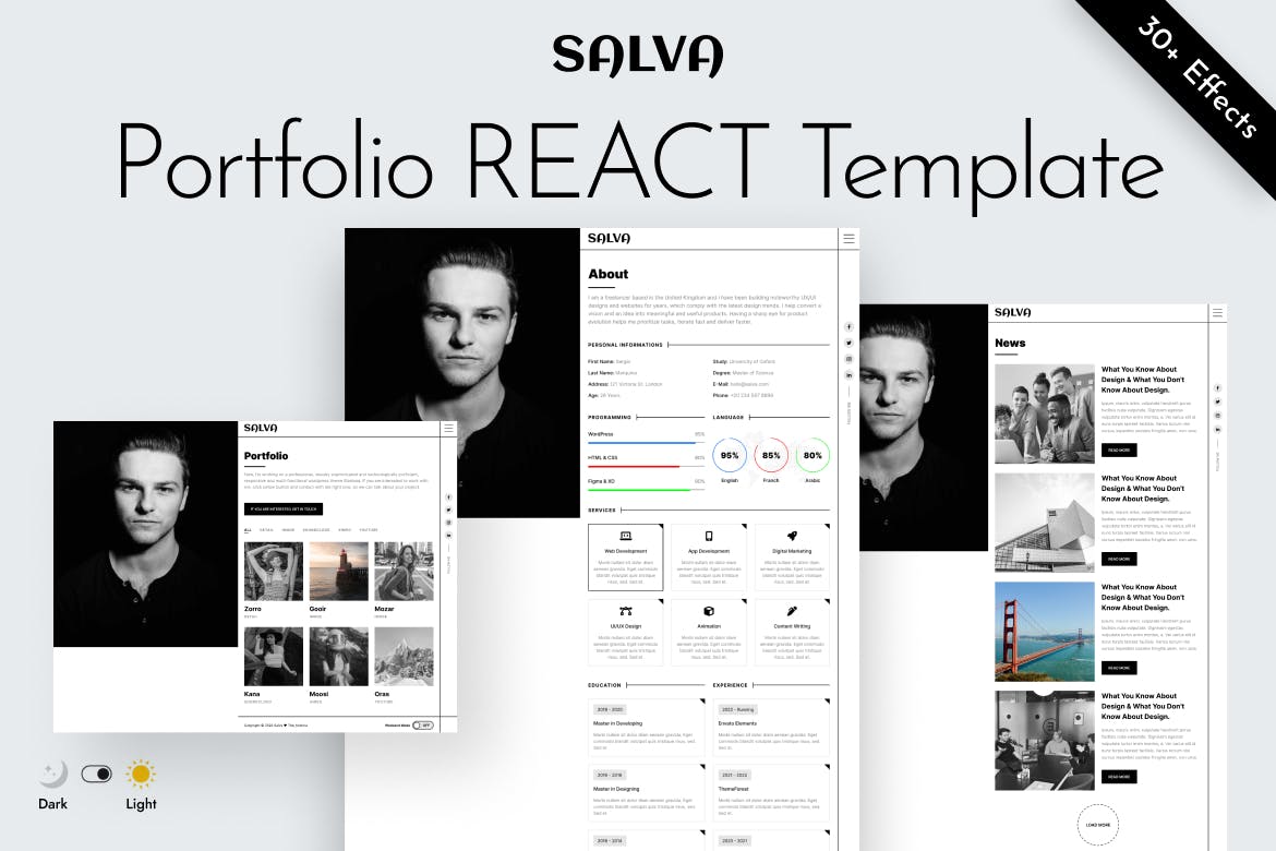 The “Personal Portfolio Resume React Template” by Salva is a professional and modern template designed for showcasing personal portfolios and resumes in a sleek and stylish manner. With its clean and minimalist design, this template is perfect for creatives, freelancers, and professionals looking to highlight their work and accomplishments. The use of React technology ensures a smooth and interactive user experience. The template includes multiple sections for displaying work experience, skills, projects, and contact information, making it easy for visitors to navigate and learn more about the individual’s background. Overall, this template offers a visually appealing and functional solution for individuals looking to create an impressive online presence.