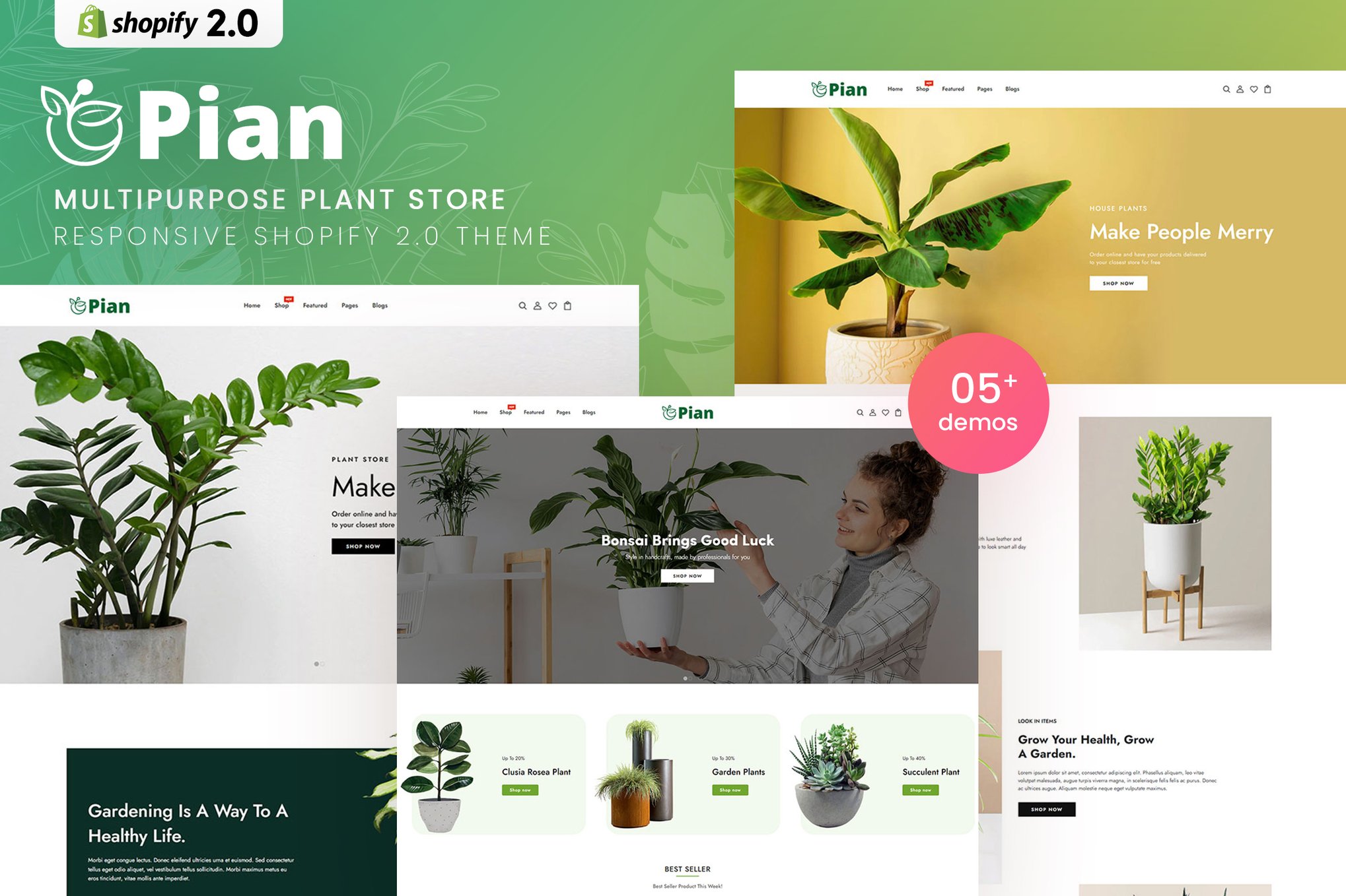 The Pian Shopify Theme is a clean and elegant choice for creating professional online shops, with a focus on categories such as Gardening, Houseplants, and Landscaping. This theme offers 5 homepage variations, 6 header styles, and unlimited mega menu layouts, providing versatility for customization. Built on Shopify Online Store 2.0, Pian allows for easy drag-and-drop customization, and is compatible with all valid Shopify App Store apps to enhance your store-building experience.