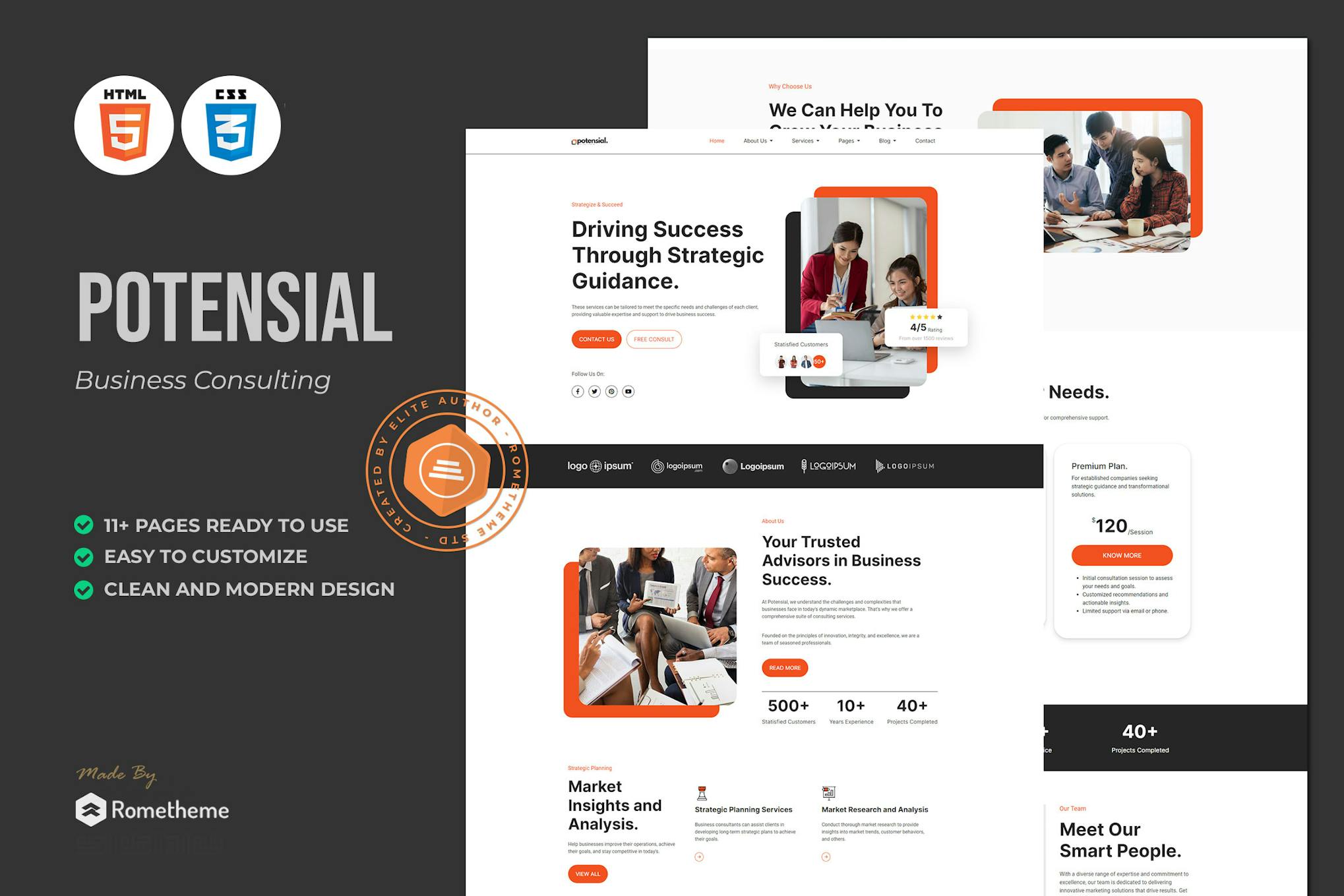 Meet Potensial is a versatile HTML template tailored for business consulting, finance, marketing, or corporate services. It is perfect for businesses looking to showcase their work and professional services with ease. This template is built with Bootstrap, HTML5, CSS3, JS, and jQuery, offering a seamless user experience. The template’s standout feature is its visually appealing designs and user-friendly interface, ensuring high user satisfaction. It is fully responsive, customizable, with well-commented code and SEO-friendly structure.