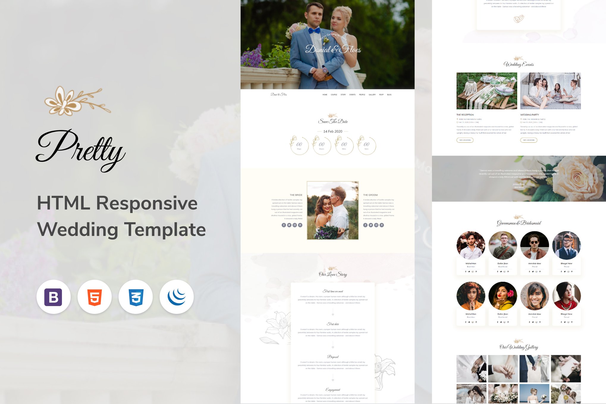 Pretty is a stunning HTML responsive wedding template that offers a modern and elegant design. Utilizing the latest tools like HTML5, CSS3, Bootstrap, SASS, and jQuery, this template is perfect for couples looking to create a beautiful wedding website. With features such as couple details, love story, countdown, groomsmen and bridesmaids sections, and event listings, Pretty covers all aspects of wedding planning. You can easily personalize the template by adjusting the primary color variable, and the RSVP form allows guests to send emails directly. The template boasts a unique design, works seamlessly on both mobile and desktop devices, and includes 10 home variations, a working contact form, Google Maps integration, Google Fonts, sticky menu, CSS animations, Bootstrap framework, and more. With clear formatting, W3C validated code, and cross-browser support, Pretty is the ideal choice for couples seeking a visually appealing and functional wedding website.