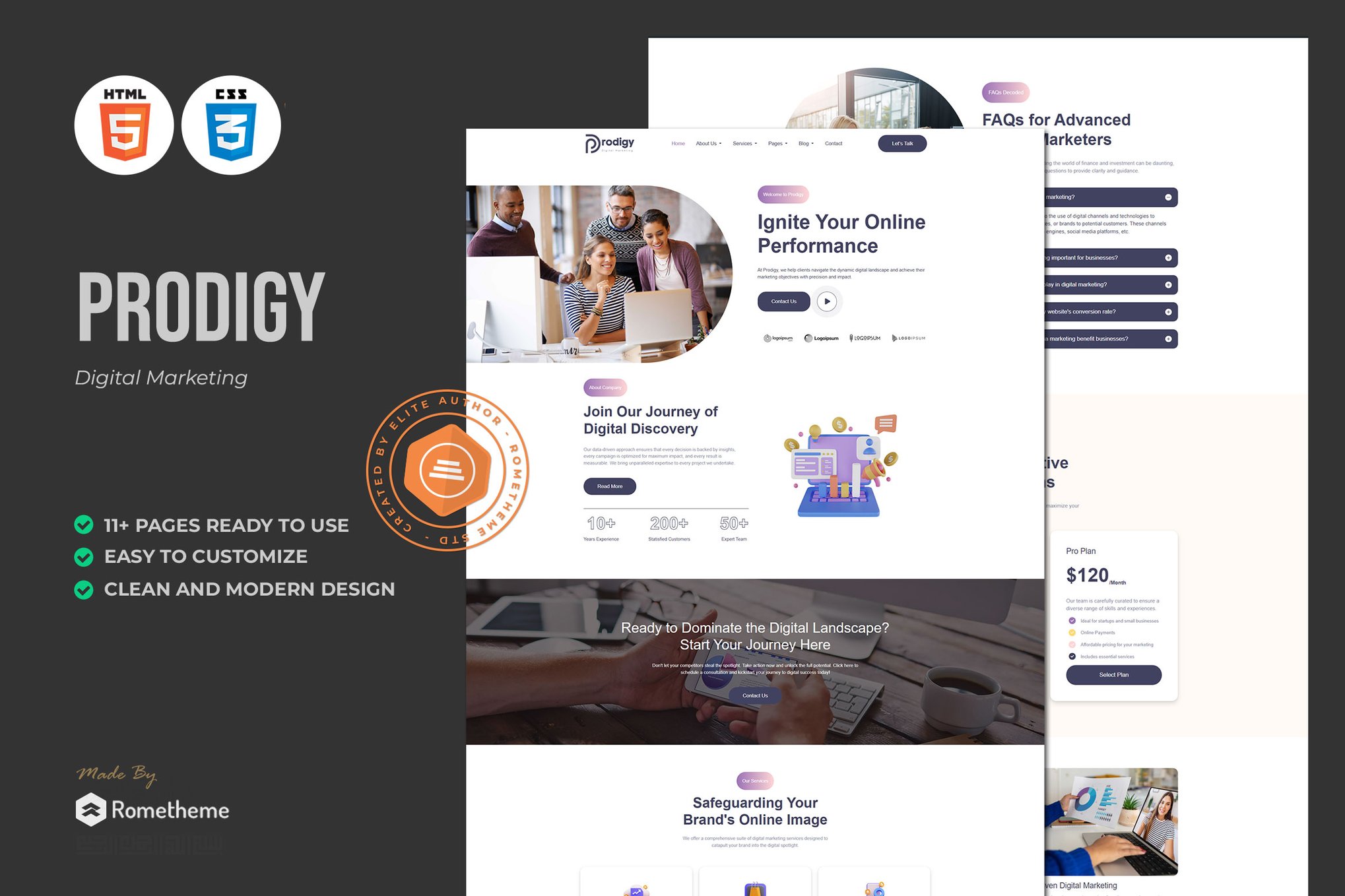 Meet Prodigy is a comprehensive HTML website template designed for digital marketing needs, offering a range of features to help showcase services and grow businesses. With attractive designs and customizable options, it utilizes Bootstrap 5.3 and includes various templates for different sections like homepage, about us, team, services, projects, blog, and more.