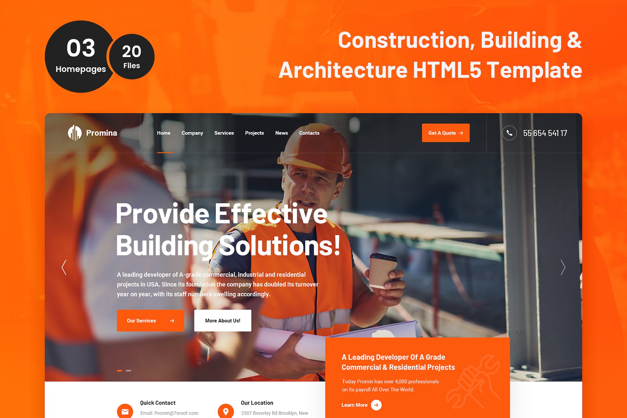 Promina is a highly versatile and responsive HTML5 template designed specifically for construction and building businesses. With its sleek and modern design, it offers a wide range of features such as project galleries, team member profiles, and service listings. Whether you need to showcase your latest projects or attract new clients, Promina provides the perfect platform to enhance your online presence.