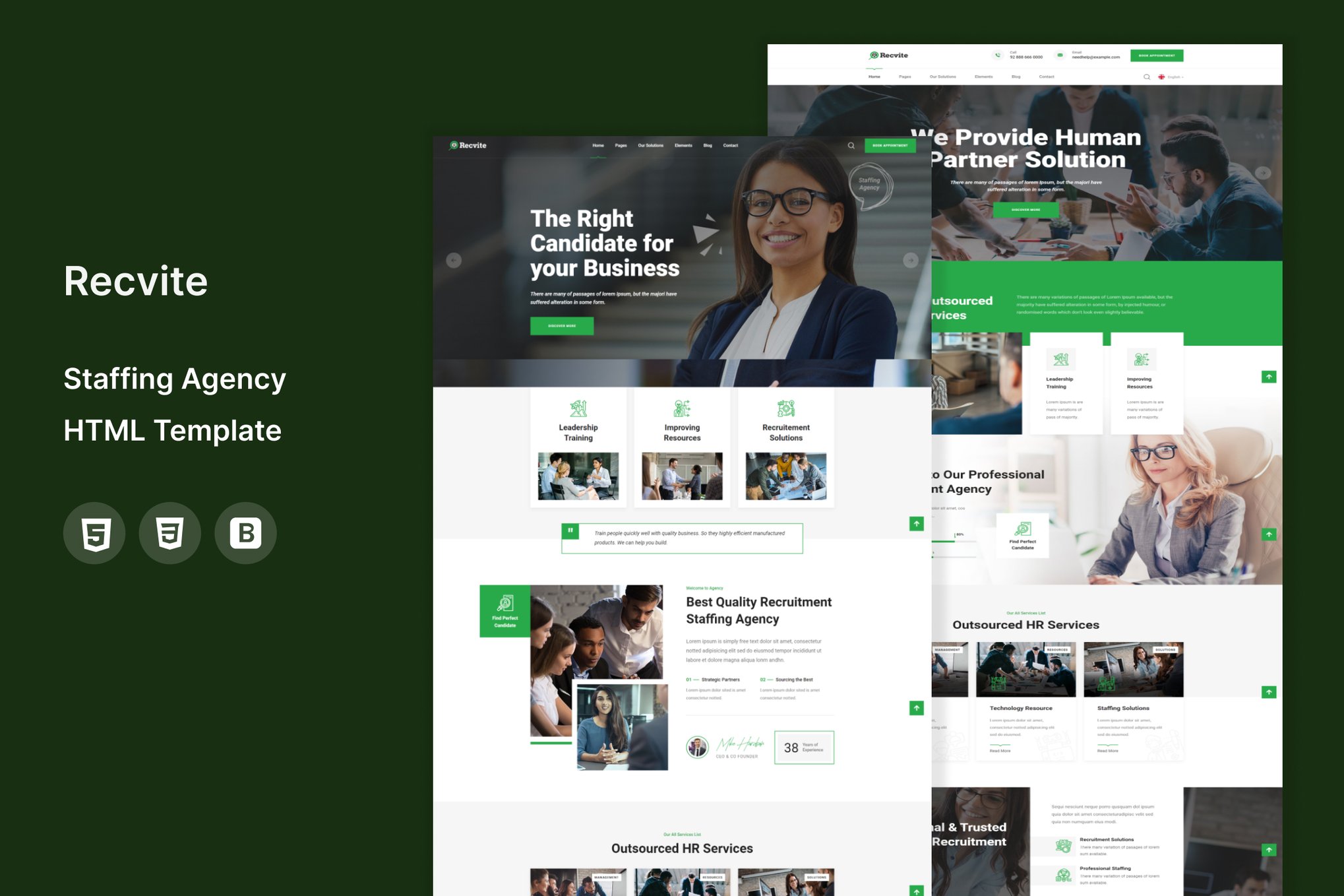 Introducing Recvite, the ultimate choice for HR & recruitment firms, consulting advisors, accountants, and more. This modern HTML template is designed with a sleek and clean layout that is 100% fluid responsive, ensuring it looks perfect on any device. With a focus on user experience, Recvite is retina optimized and includes social links for easy networking. The code is clean and well-commented, making it easy to customize. Built on Bootstrap, Recvite offers advanced typography options and a pixel-perfect design that will elevate your website to the next level.