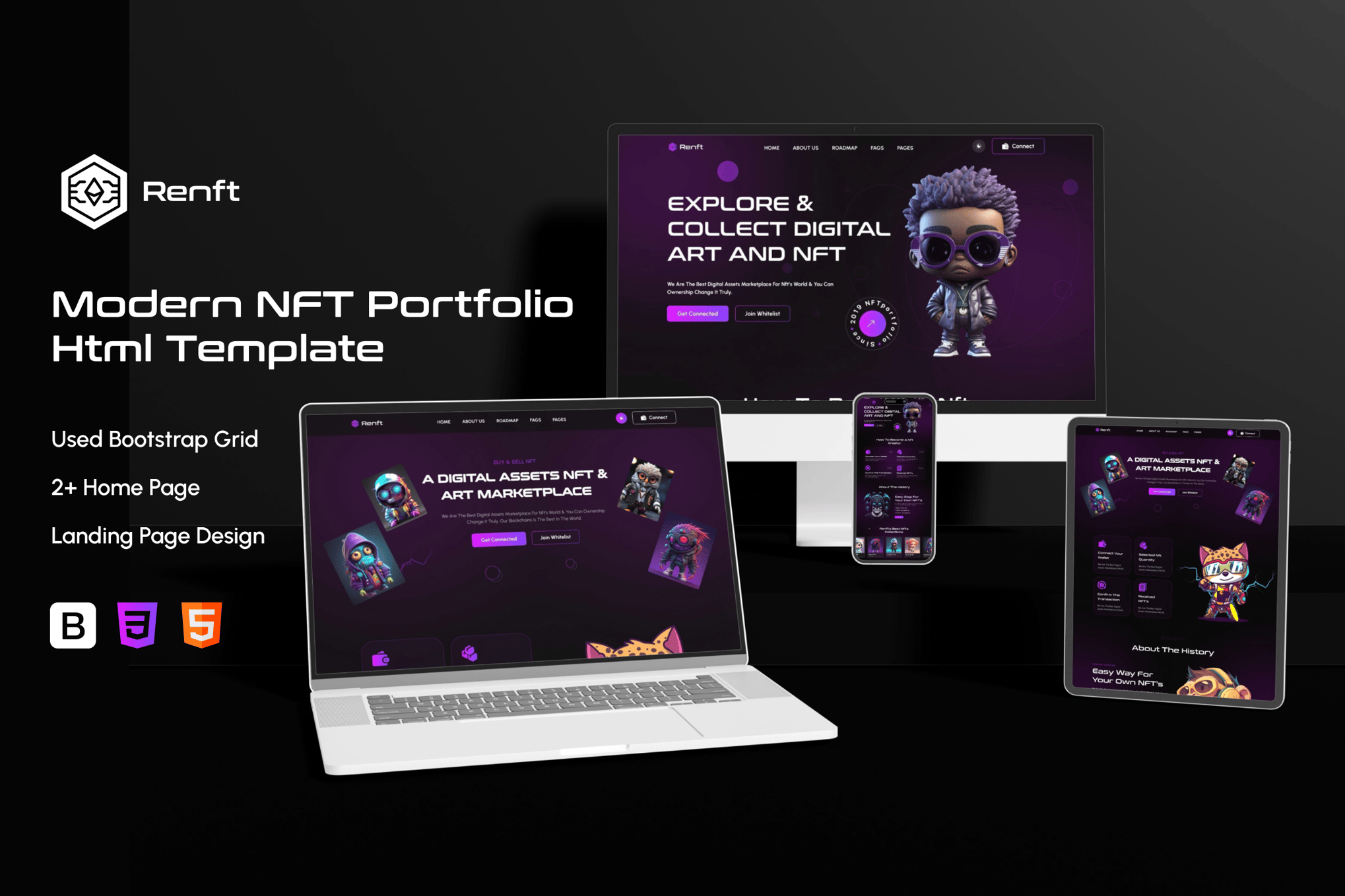 Renft is a top-tier Html template designed for Nft Portfolio Websites, with a sleek and contemporary appearance perfect for showcasing your Nft creations. This high-quality template, tailored specifically for Nft landing pages, boasts a unique style and clean design that captivates visitors. The template offers easy customization, with carefully organized and layered Html files for user convenience. Renft includes a plethora of features such as a responsive Bootstrap 5 Grid System, 4+ Homepage Layouts, Services and Project pages, and a fully functional Blog Page. Additionally, it comes with Google Free Fonts, premium images, Font Awesome Icon, Flat Icon, and a detailed documentation for seamless usage. With 24/7 support available, Renft ensures a smooth and hassle-free experience for all users looking to elevate their Nft Portfolio Websites.