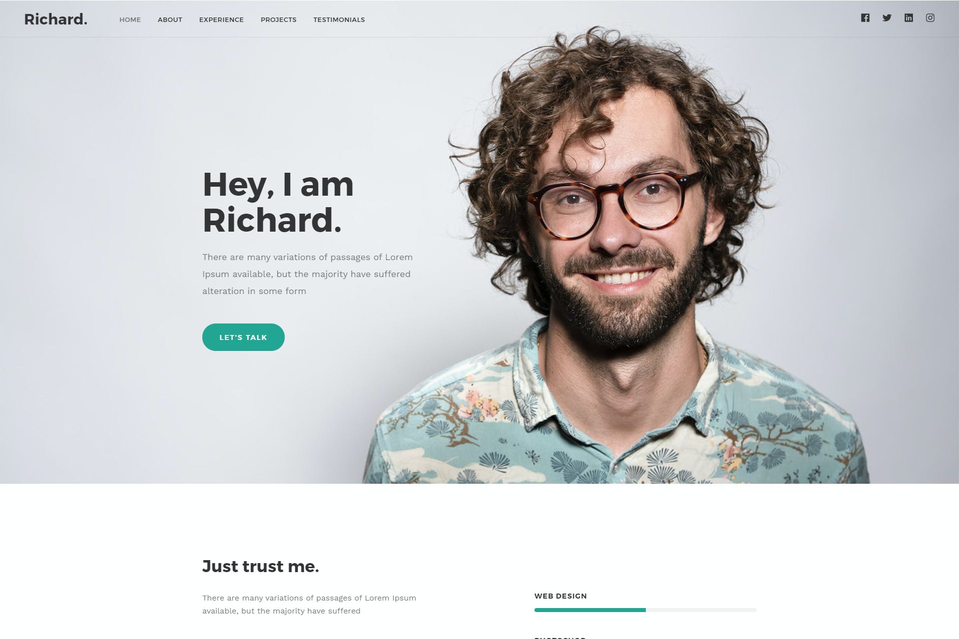 Richard – Easy Onepage Personal Template is a sleek and modern website template perfect for showcasing your personal portfolio or resume. With its clean design and user-friendly interface, Richard allows you to effortlessly display your skills, experience, and achievements. Whether you’re a freelancer, creative professional, or job seeker, this template provides a professional platform to make a lasting impression.