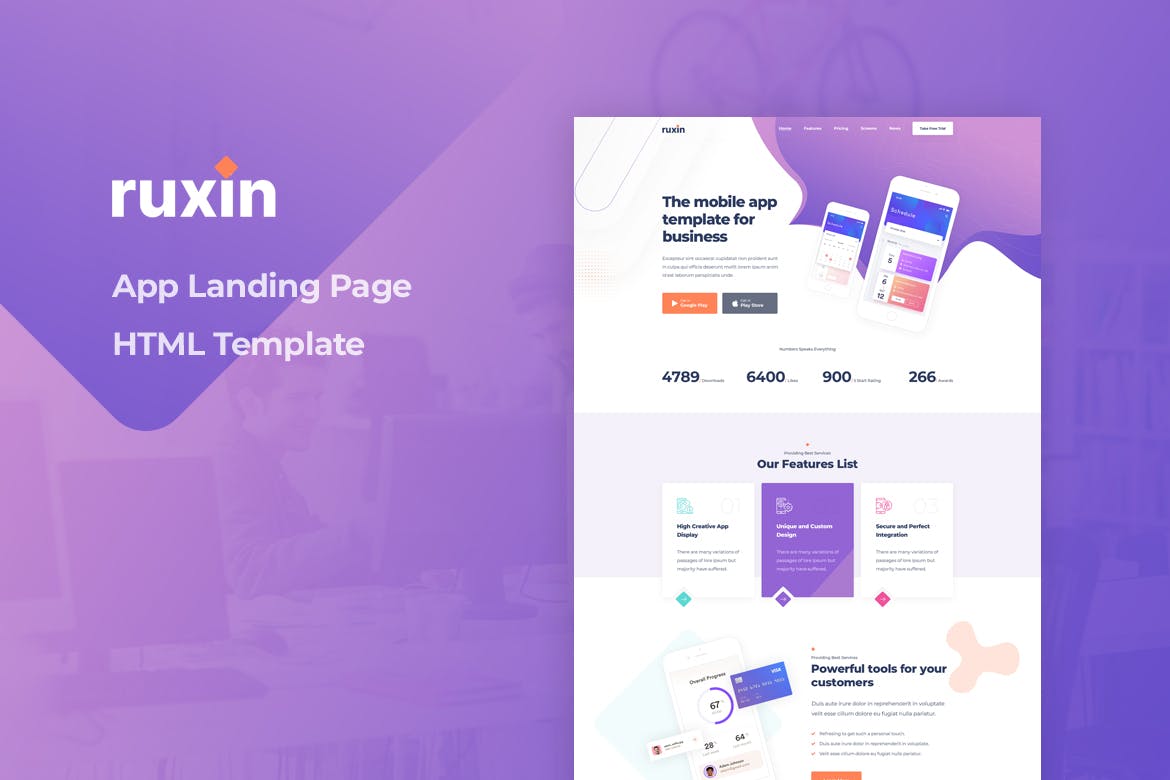 Ruxin – App Landing Page HTML Template is a sleek and modern template perfect for showcasing your app or software. It offers a clean and responsive design, with carefully crafted sections for key features, testimonials, and pricing plans. With its user-friendly layout and customizable elements, Ruxin provides an excellent platform to captivate potential users and drive conversions for your product.