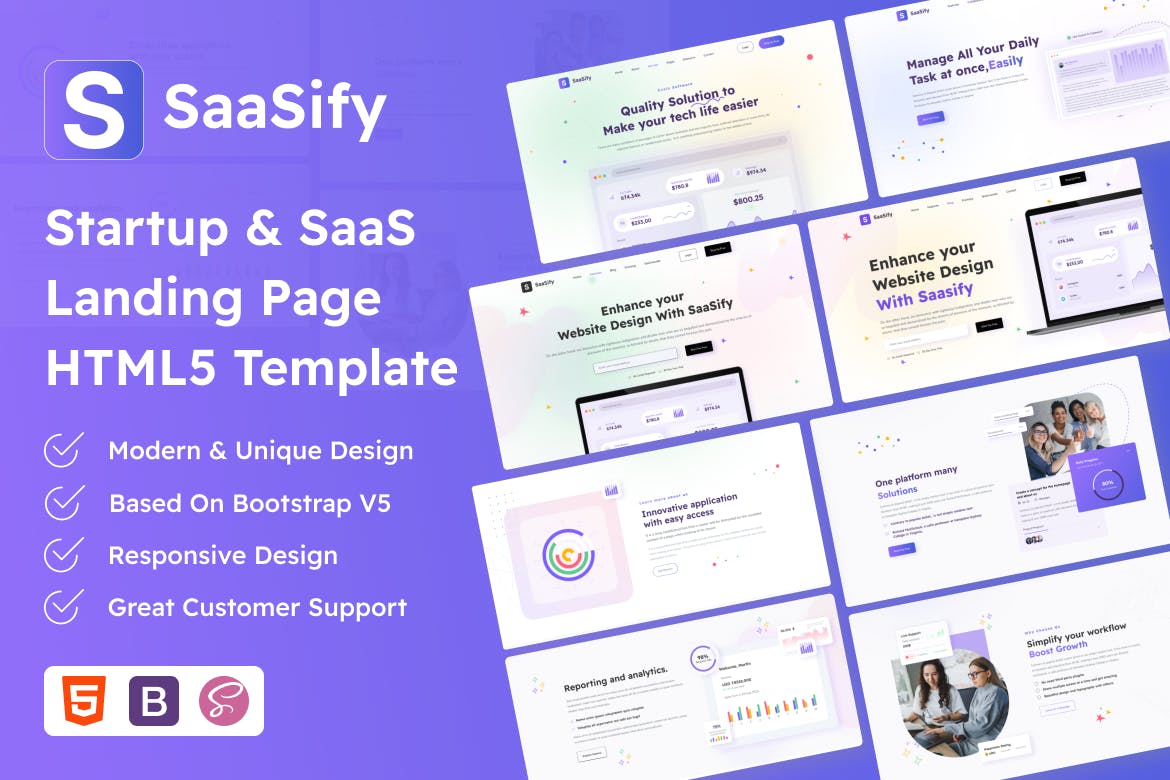 Saasify is a cutting-edge Startup & SaaS Landing Page HTML5 Template designed to help your landing page stand out. With 3 unique Home pages featuring Sticky Nav, Hero Slider, and Parallax Image options, Saasify offers a modern and sleek design for showcasing your features to potential customers. The template includes a Contact Page with a working Contact Form for easy communication with visitors. Built with Bootstrap 5.x, Saasify is fully responsive and compatible with all devices, ensuring a seamless user experience. With 12 well-commented HTML files and detailed documentation, customization is made easy and fast. Additionally, Saasify is touch-friendly, cross-browser compatible, and SEO friendly, making it a comprehensive solution for your Startup & SaaS landing page needs.