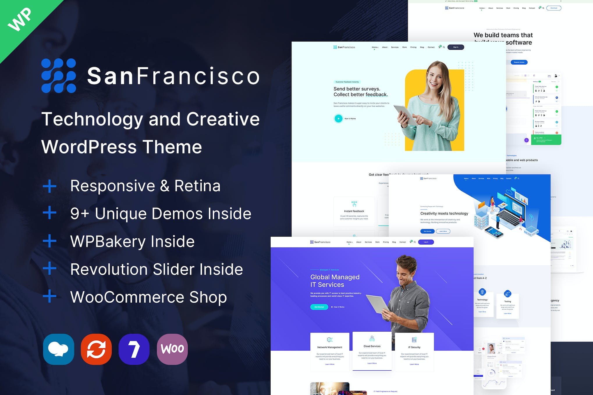Introducing San Francisco, an ultra-responsive and retina-ready WordPress theme designed for Creative, Technology, App, Business, Studio, Portfolio, and other websites. Packed with customization options and settings, you have the power to change almost anything. With 9+ unique demos and a drag and drop page builder, you can create any type of website quickly. Enjoy features such as one-click demo installation, multiple layout options, WooCommerce compatibility, and advanced customization. Get started with building your website in mere minutes with San Francisco WordPress Theme.