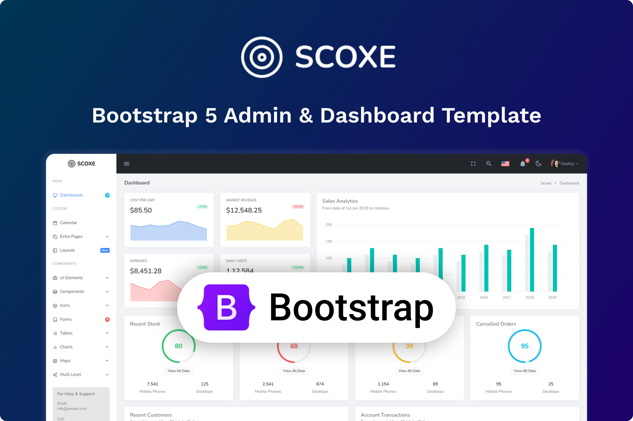 Scoxe is the ultimate developer-friendly HTML admin dashboard template designed to streamline your project workflow. Built on Bootstrap 5, HTML5, CSS3, and jQuery, Scoxe offers a clean, flat, and modern design that is fully responsive across all devices. With 48+ pre-built pages and extensive customization options, Scoxe provides all the necessary components and widgets to create visually appealing interfaces. From form validation to map integration, rich text editing to advanced tables, Scoxe covers it all. Ideal for industries like finance, real estate, and e-commerce, Scoxe is perfect for agencies, startups, and specialized websites looking for a versatile admin solution.