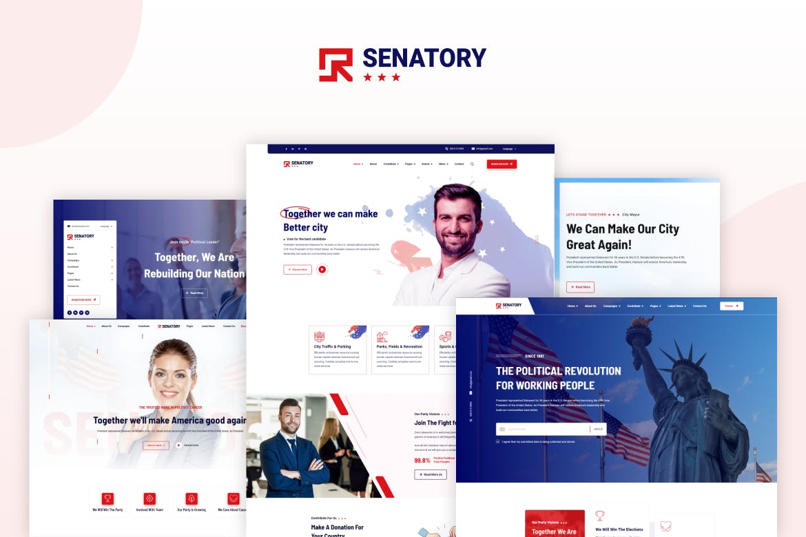 Elevate your political party or candidate’s online presence with Senatory HTML Template. This responsive template ensures seamless viewing on all devices, featuring 18+ inner pages and 2 home page options. With a range of sections like blog, event, donation, and team pages, Senatory boasts a modern design, Google Fonts, and free font-based icons for a polished website that can easily be converted into WordPress and other platforms. Unlock the potential of your political website with Senatory.
