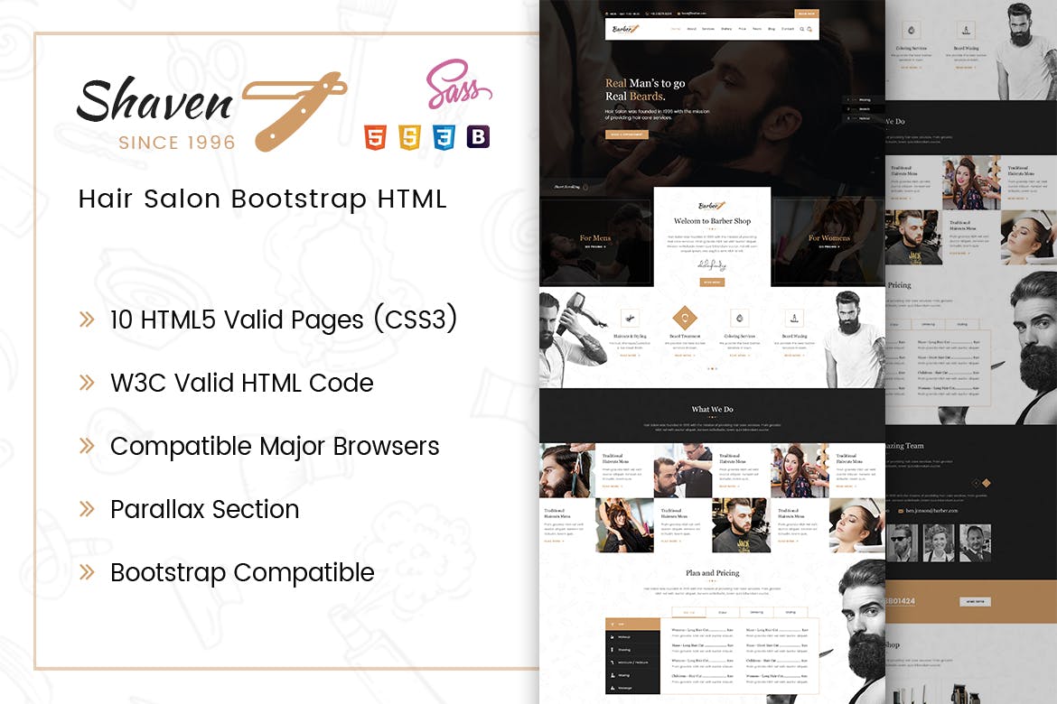 Shaven – Salon HTML Template offers a sleek and professional design tailored for barbers and hairdressers. With 10 HTML5 valid pages and a W3C valid HTML code, this template ensures a clear and clean layout for your website. Enjoy features like image galleries, blog pages, and responsive design, all complemented by easy customization and compatibility with major browsers. Elevate your barber or hairdressing business with Shaven – Salon HTML Template.