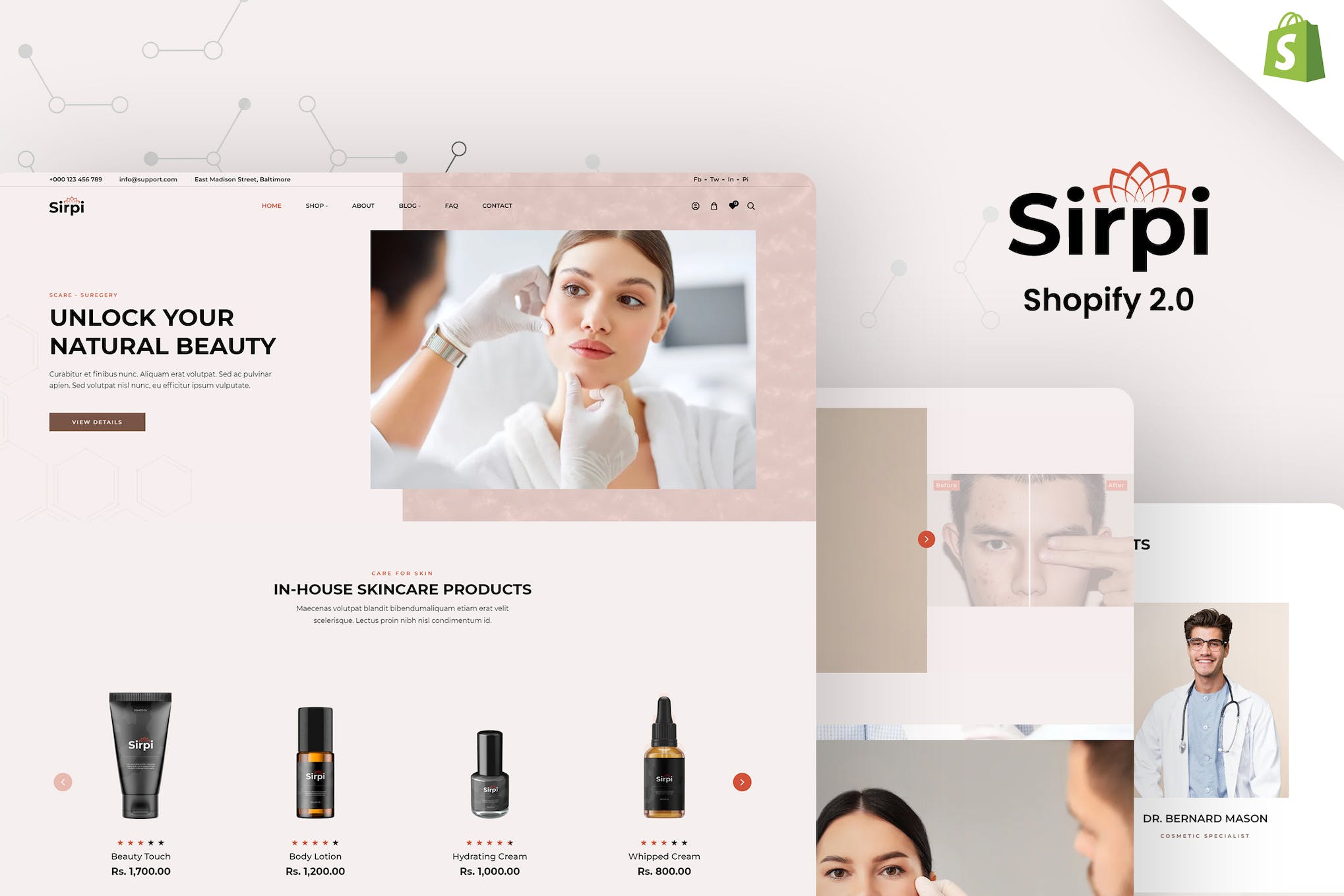 Introducing Sirpi Shopiy Theme, the perfect choice for Skincare Treatment Clinics, Cosmetic Stores, and Beauty Products Online Businesses. This professional theme is also ideal for Medical care Websites, Dermatologist Skin clinics, and Healthcare specialists. With its responsive design, it looks great on all devices. The theme offers a slick slider, product featured slider, and carousel option, making it easy to showcase your products. The Ajax filters and customer accounts feature enhance the user experience, while the customizable options and SEO optimization ensure your website stands out from the competition.