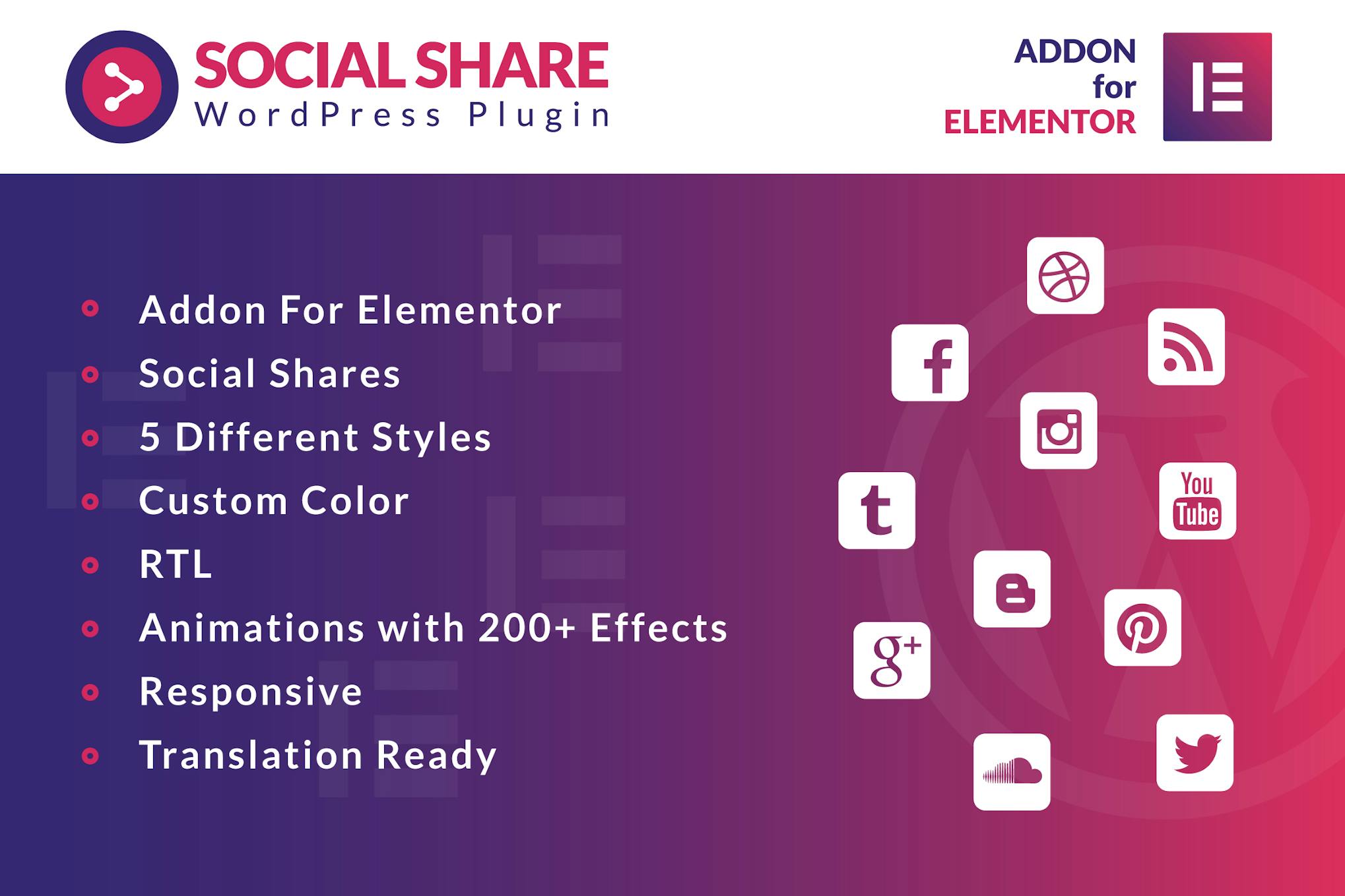 Social Share for Elementor is a convenient plugin that allows you to easily add social share buttons with just a single click. This addon requires Elementor to be installed for use and offers various features such as 5 different styles, custom colors, RTL support, animations with over 200 effects, and translation readiness with included .po/.mo files. With its responsive design, you can enhance the social sharing experience on your WordPress site effortlessly.