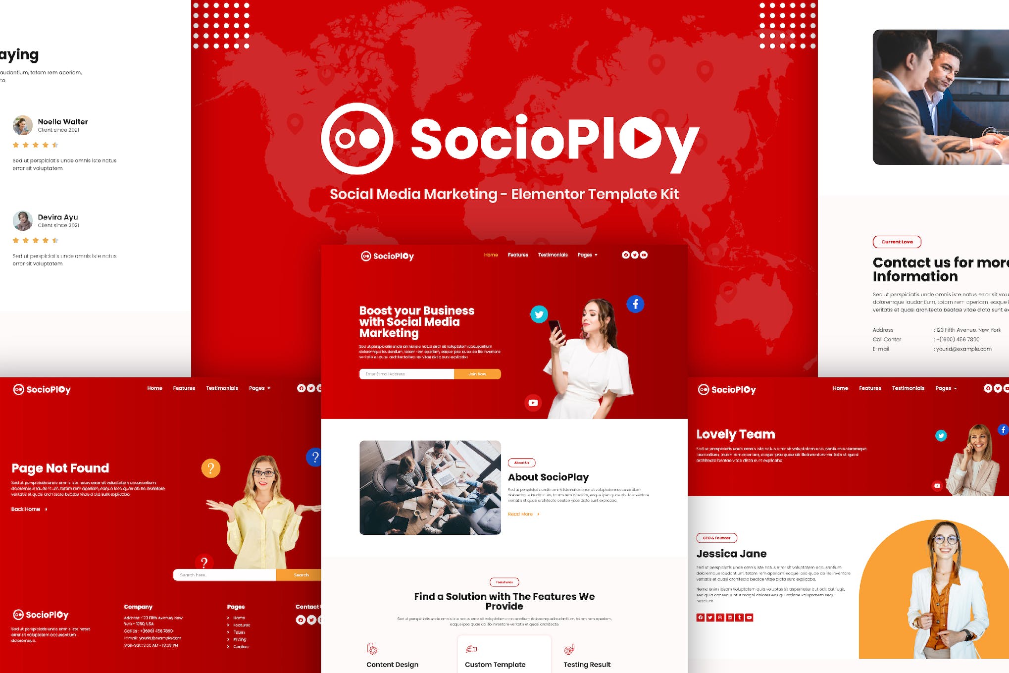 Introducing Socioplay- Social Media Marketing Template Kit, a collection of professional and modern layout templates designed for the Elementor Page Builder WordPress plugin. This kit includes 10 ready-to-use templates that are easy to customize and fully responsive. Boost your online marketing efforts with its sleek and clean design. Please note that Elementor Pro upgrade is required for some templates and features, which are not included in the download. Create a striking website with Socioplay and stand out in the digital landscape.