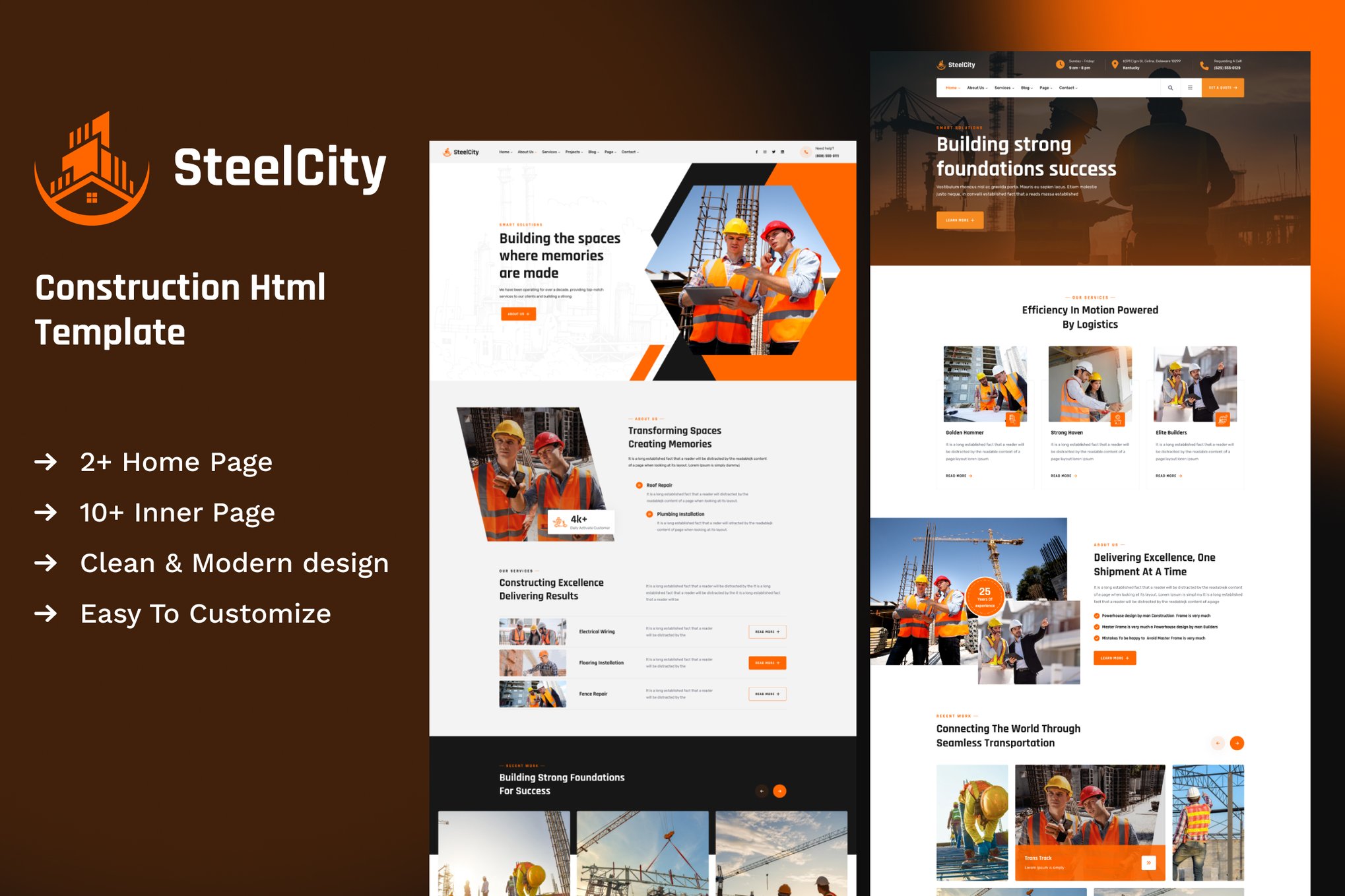 SteelCity – Construction Building HTML Template is a professional website design solution tailored for construction, renovation, architecture, engineering, real estate, and industry companies. With easily customizable files, a range of inner page layouts, and a clean design, this template offers flexibility to enhance your website’s visual appeal.