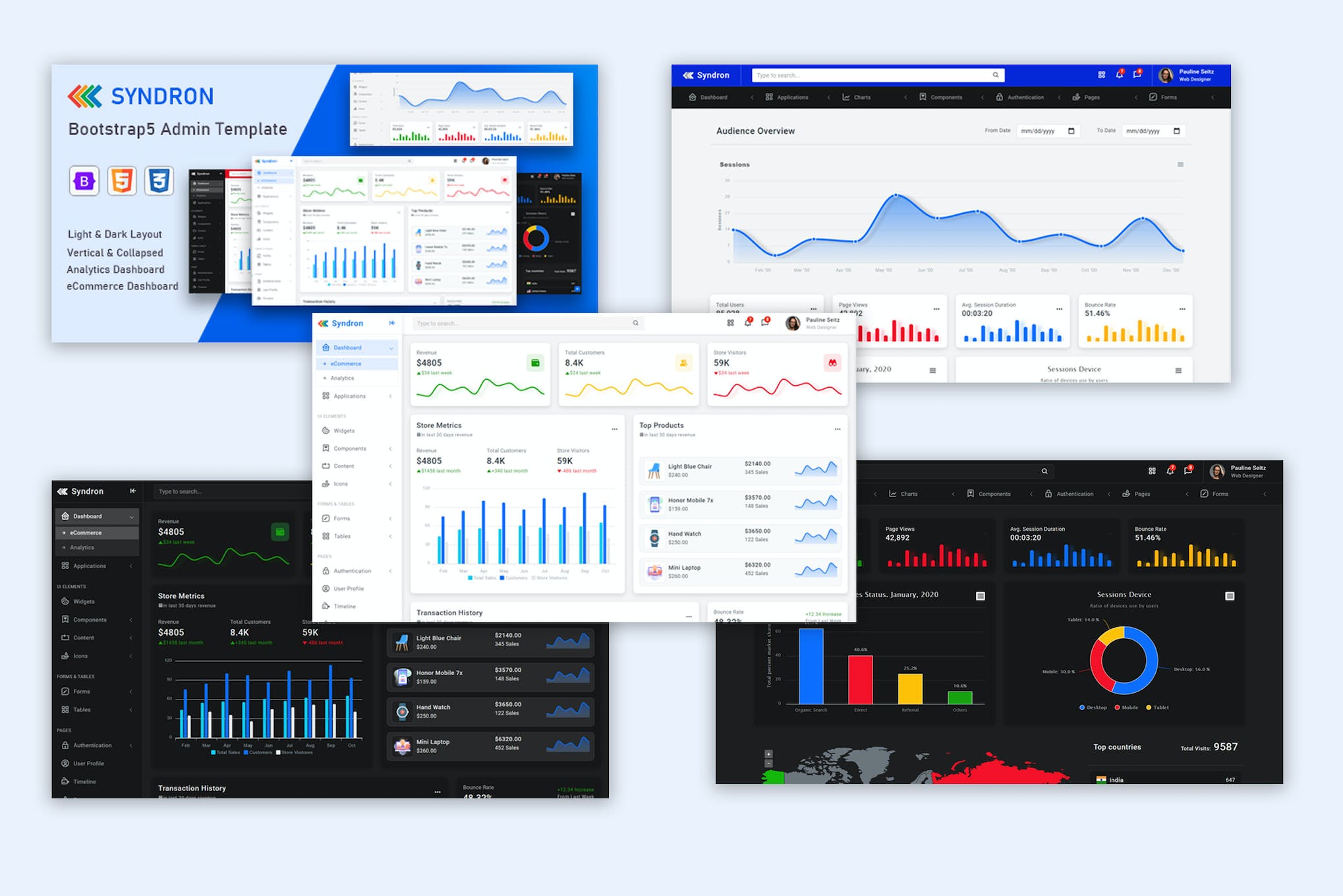Syndron is a sleek and modern Bootstrap5 admin template that offers an intuitive and user-friendly interface for managing your website or application. With its clean design and customizable components, Syndron provides a seamless experience for developers and administrators alike. From its responsive layout to its wide range of features, this template is the perfect choice for anyone in need of a professional and efficient admin dashboard.