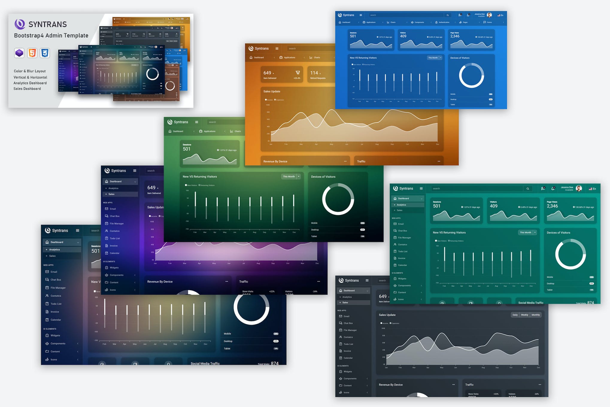 Syntrans Bootstrap4 Admin Template is a sleek and modern admin template that offers a visually stunning interface for managing your website or application. With its responsive design and powerful features, it provides an effortless user experience. Whether you’re a developer or a non-technical user, Syntrans makes it easy to customize and manage your admin dashboard.