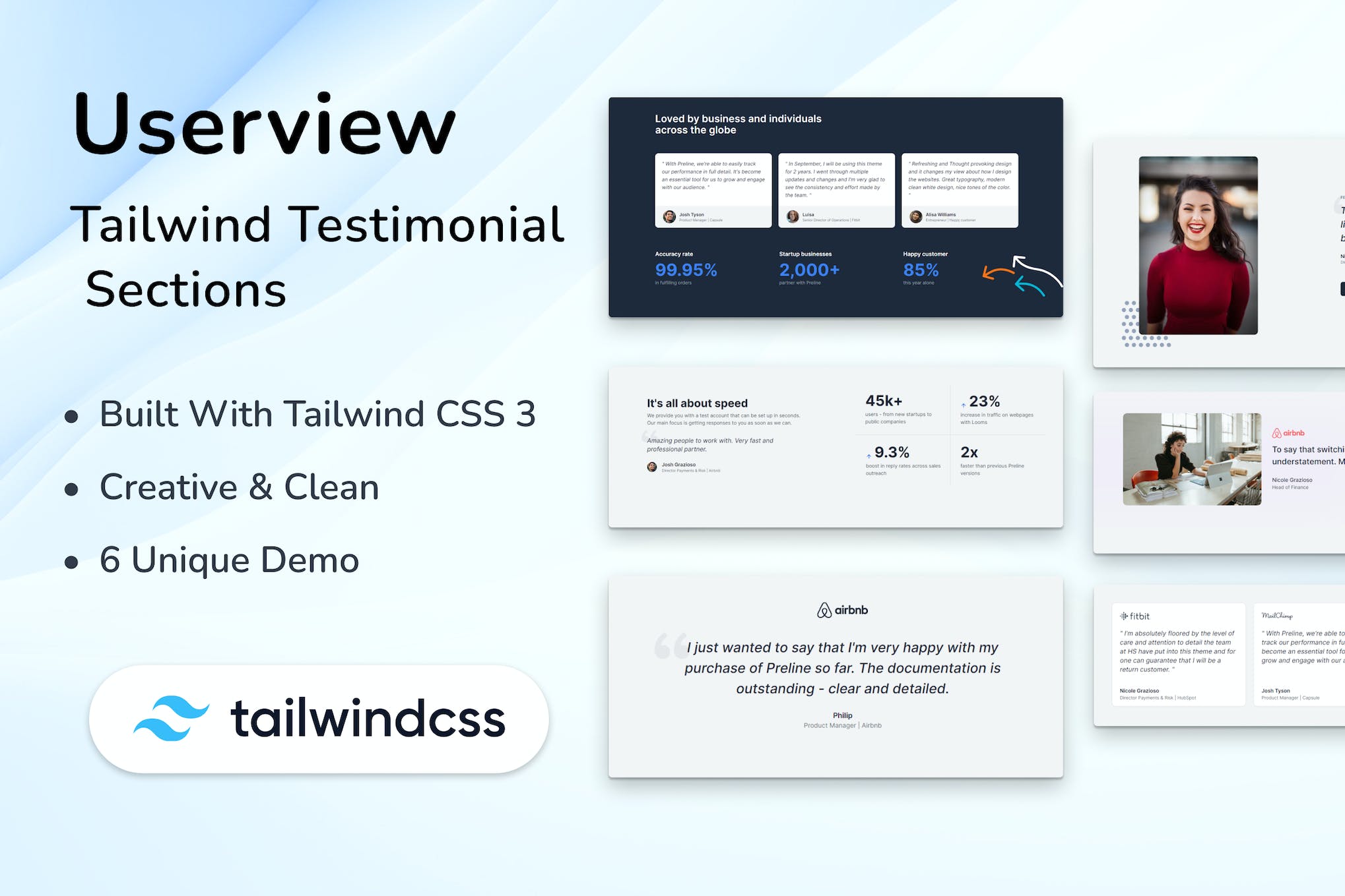 Elevate your web development projects with Userview, a meticulously designed Tailwind CSS 3 template built on the foundation of 100% W3C web standards. Seamlessly adaptable to various screen sizes, Userview offers a comprehensive set of HTML and CSS files, showcasing your business offerings elegantly in a fully responsive, mobile-first layout. This versatile and free template simplifies the construction of back-end applications effortlessly and stands out as a robust CRM solution compatible with popular frameworks like Nuxt and Laravel—all at no cost.