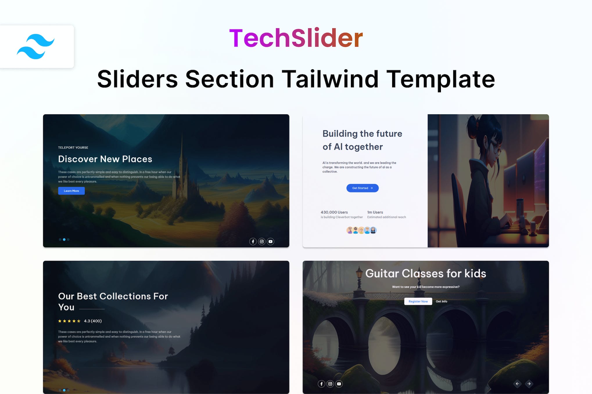 Introducing TechSlider – Hero Slider Section, a cutting-edge Tailwind CSS 3 HTML Template that elevates your website with captivating Hero sections for a seamless user experience. Boasting a meticulously designed swiper slider built with Tailwind CSS, this template ensures lightning-fast load times and seamless customization thanks to its developer-friendly code and component-based structure. Perfect for diverse agencies and businesses, TechSlider seamlessly integrates animations and is fully responsive with Google Fonts support, making it an ideal choice for enhancing your online presence.