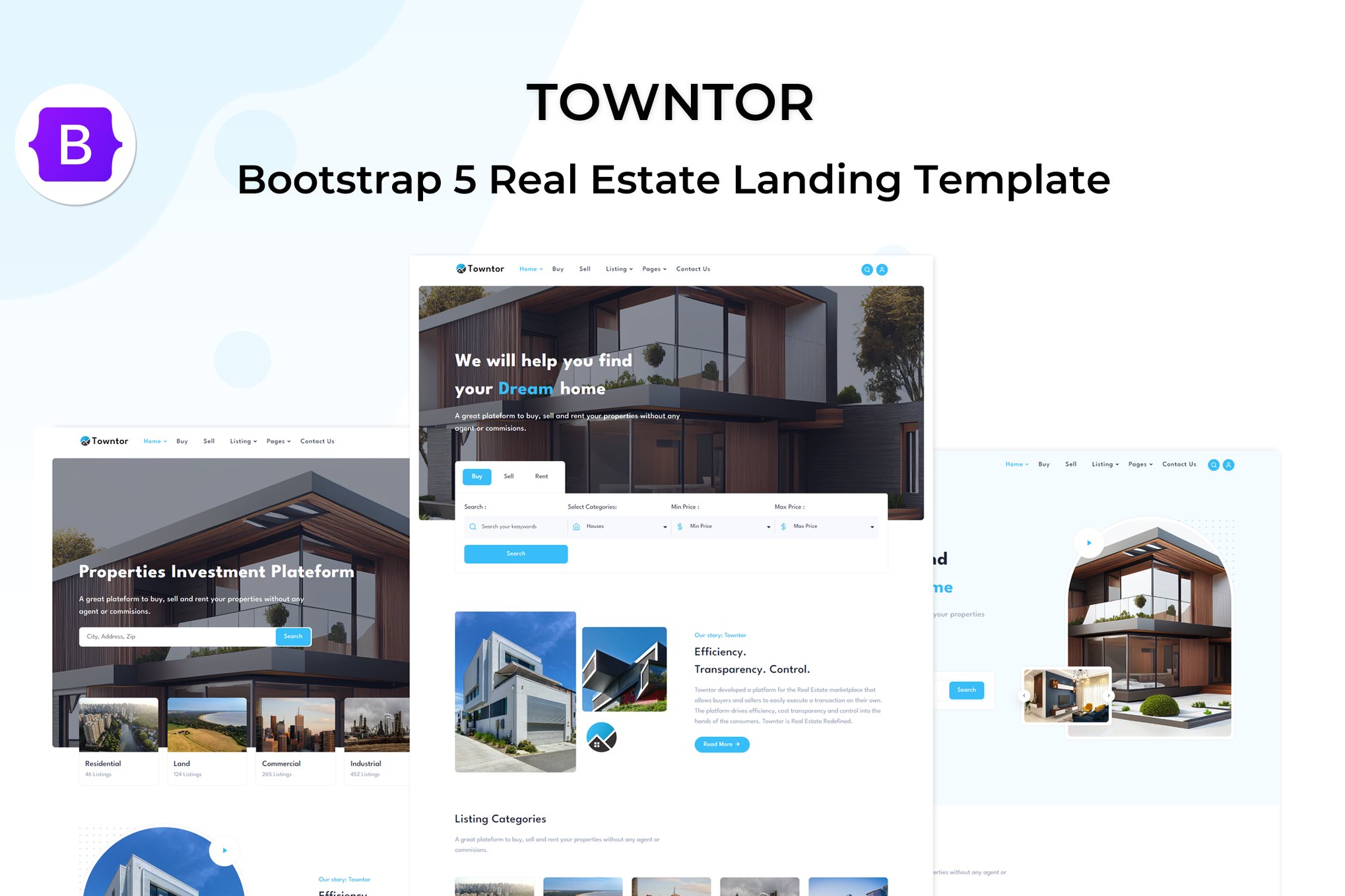 Towntor is a high-quality Real Estate Responsive HTML5 Template featuring a clean design, customizable sections, and full support for various devices. With a focus on user-friendly features and modern aesthetics, it caters to real estate businesses of all kinds.