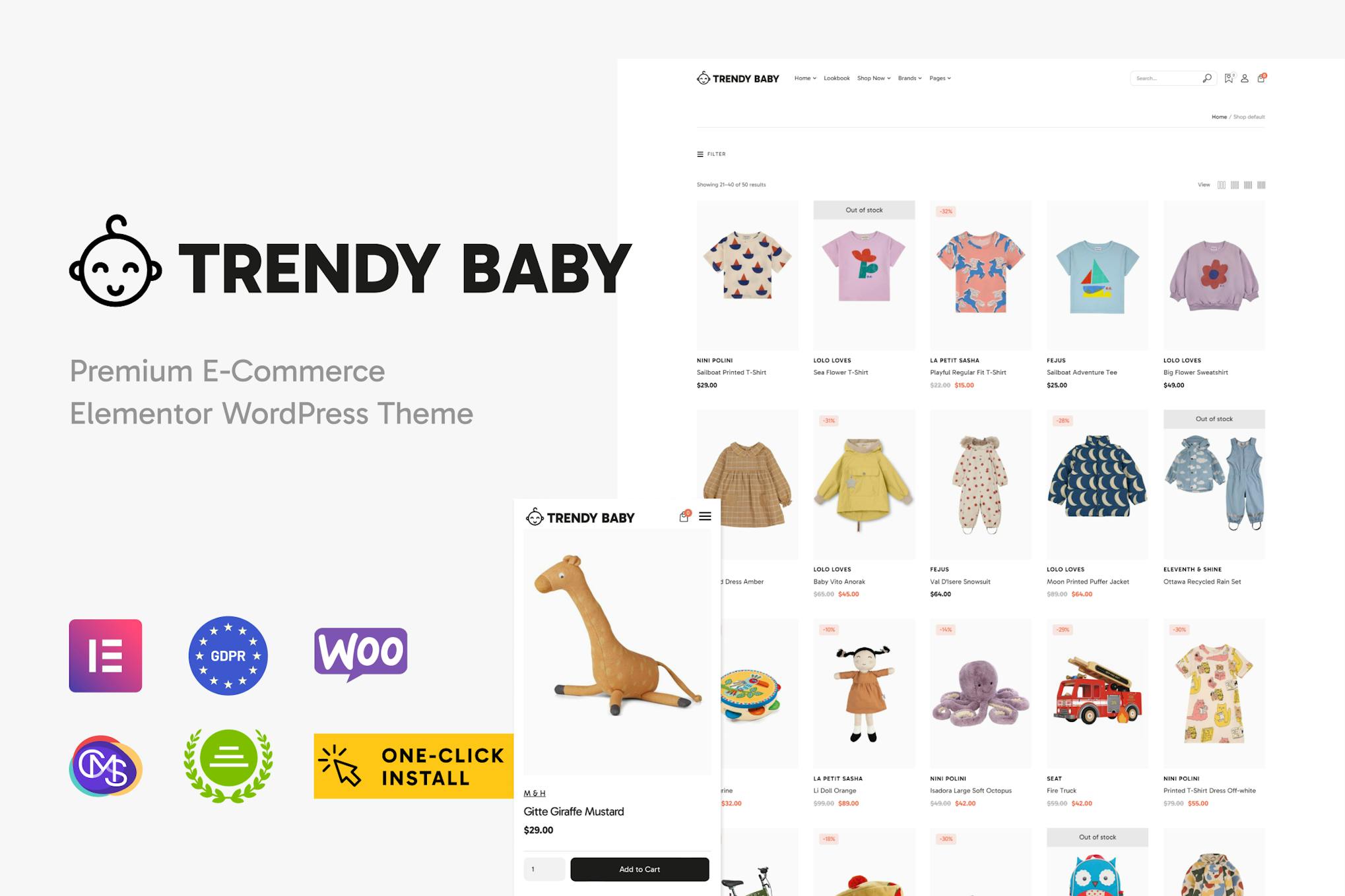 Trendy Baby is a stylish WordPress theme catered to baby stores, offering a range of layouts for showcasing and selling adorable children’s products. With the power of WooCommerce and Elementor, this theme seamlessly combines functionality with visual appeal. The package includes various WooCommerce store features such as product templates, wishlist options, product comparison, and a dynamic cart. Moreover, it enhances the user experience with custom Elementor widgets, shop widgets, and an easy-to-use header and footer builder. The inclusion of Slider Revolution and other premium plugins make Trendy Baby an ideal choice for creating a responsive and attractive online store for kids.